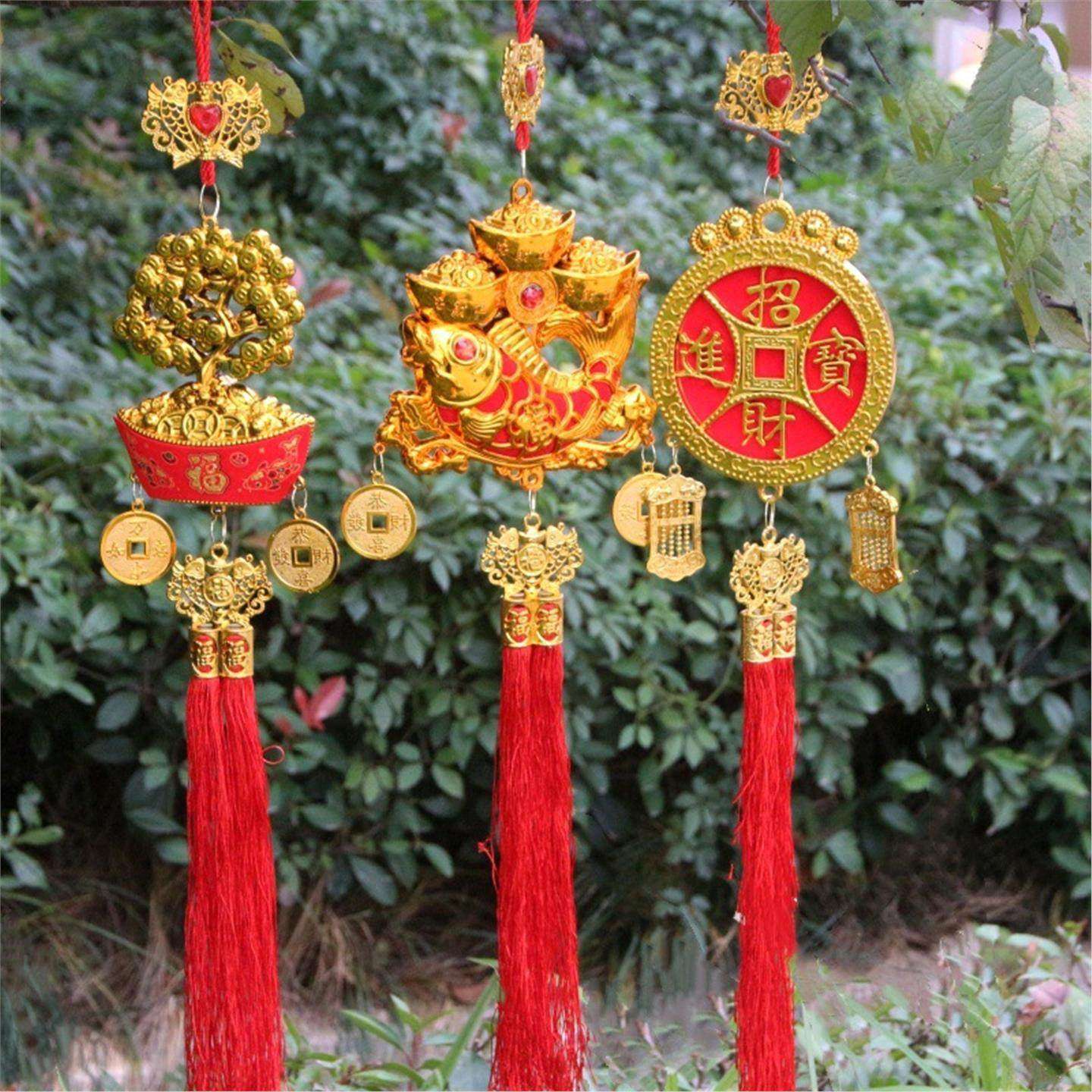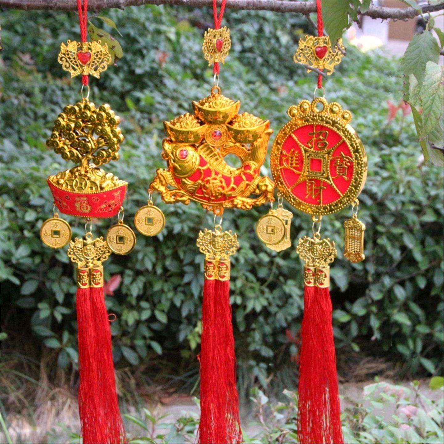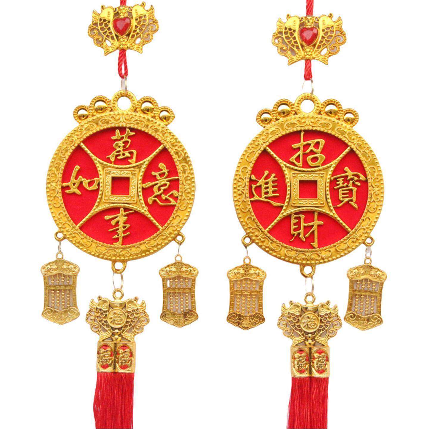新年乔迁客厅玄关福袋鱼铜钱发财树金色大挂件装饰春节年货喜庆品