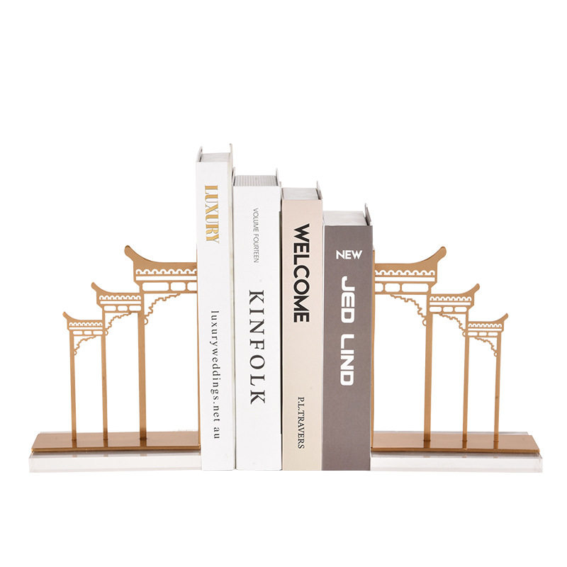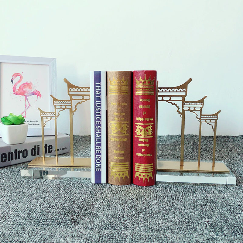 现代金属书靠书挡软装工艺饰品摆件新中式书立样板房间书房办公室