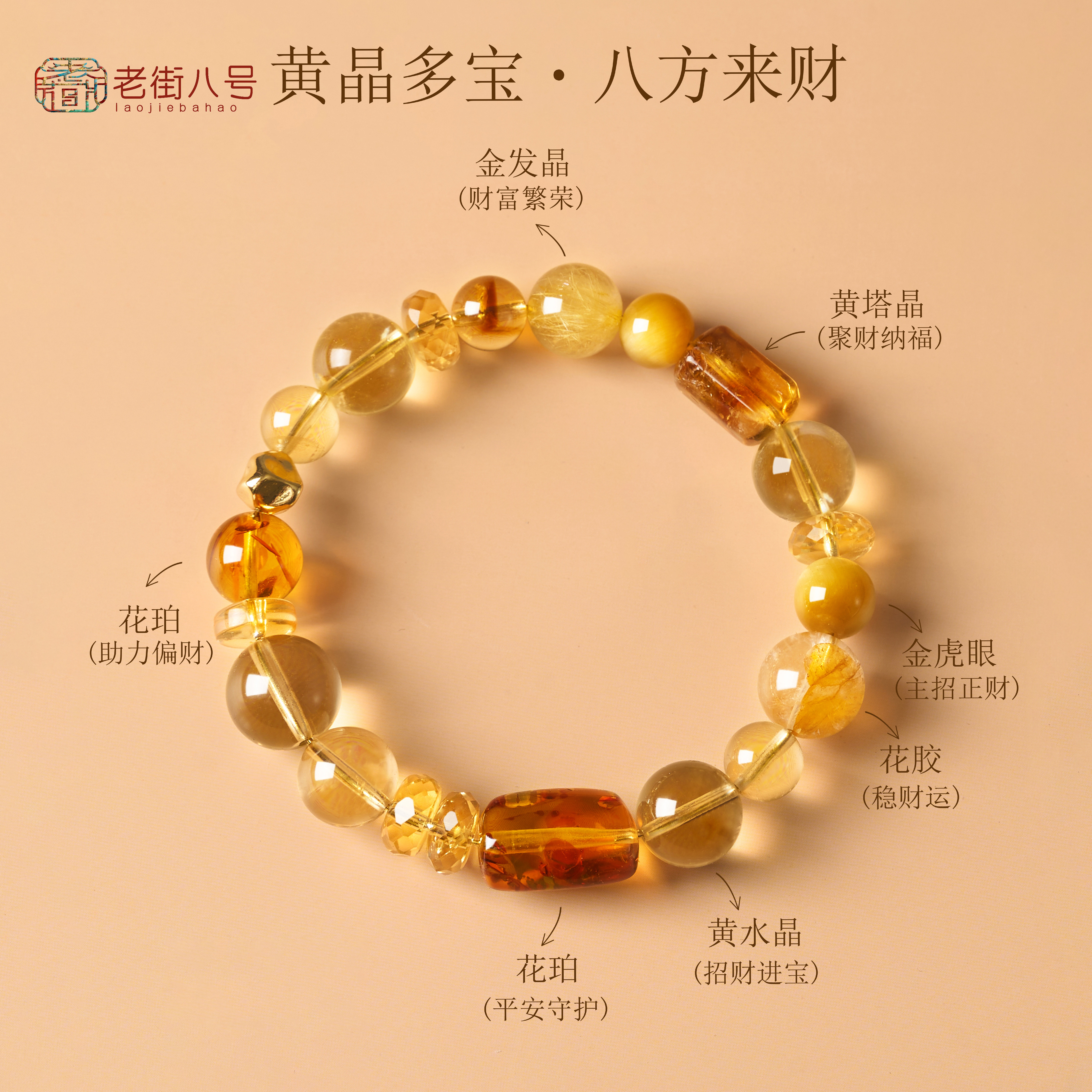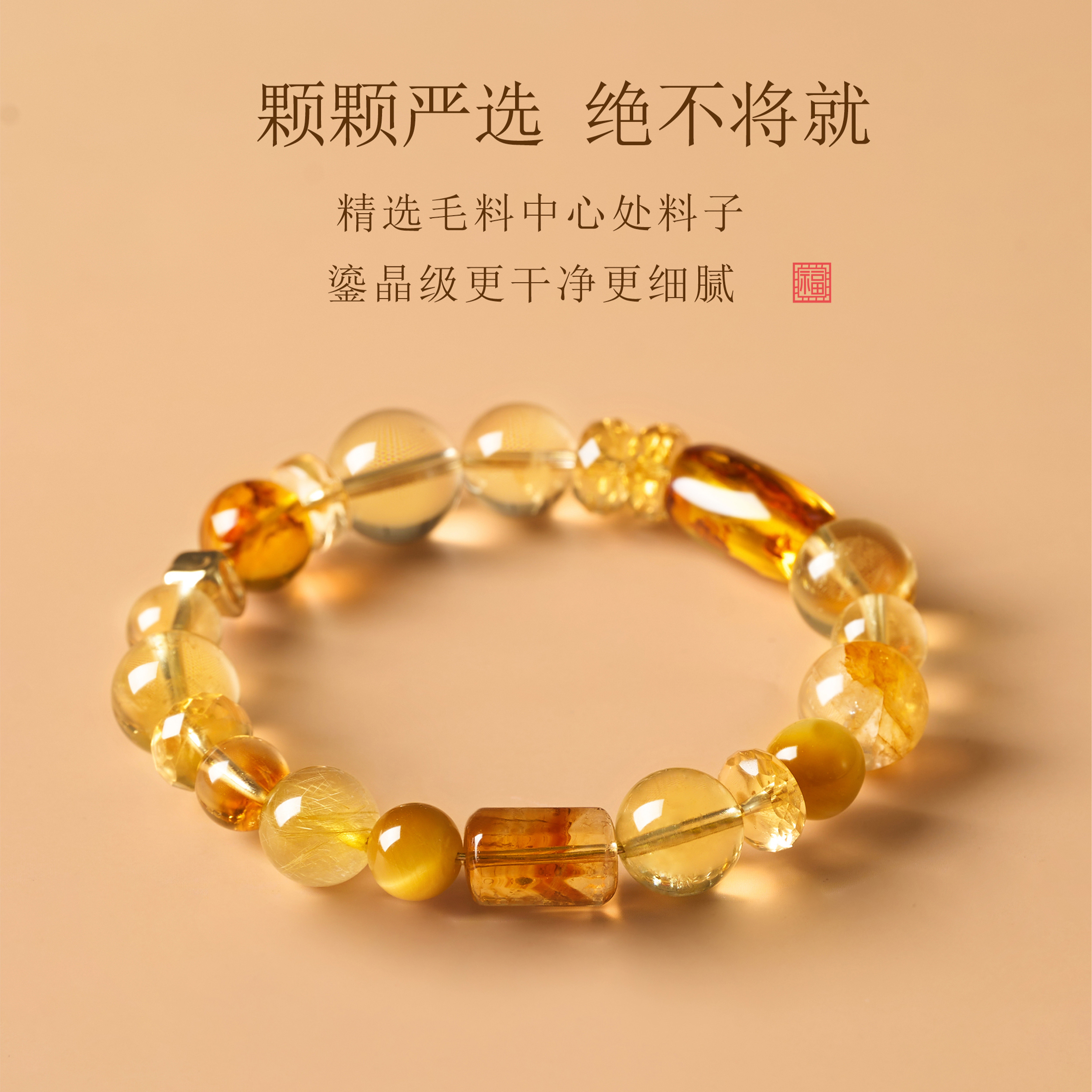 天然黄水晶手串财源广进转运纳福手链马年礼物多宝岁岁生金