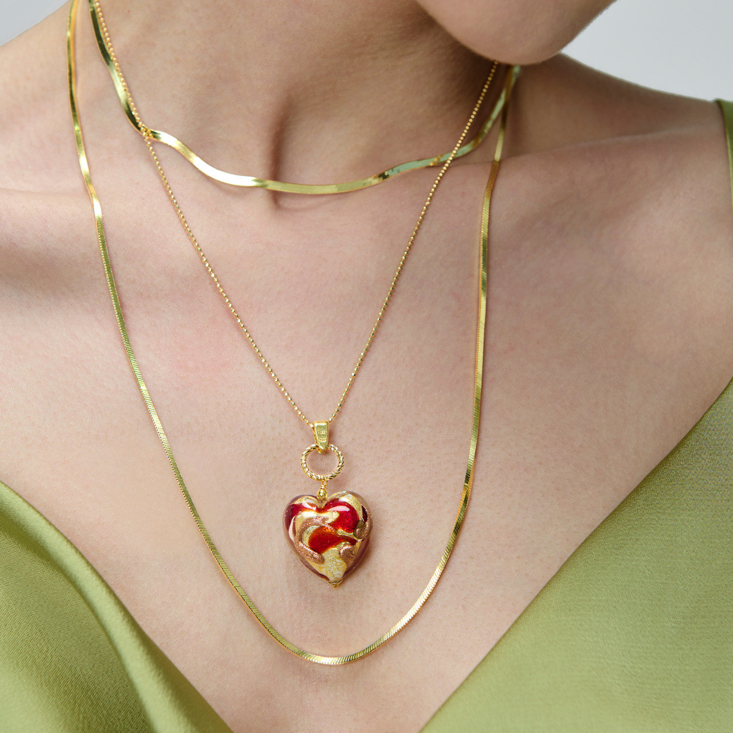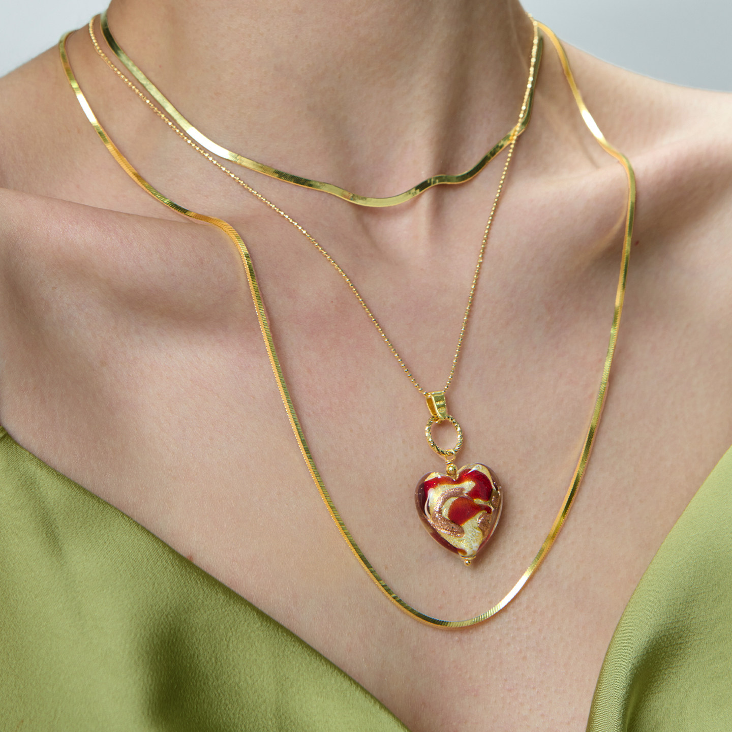 JOYSTONE意大利穆拉诺心形糖心复古琉璃项链纯手工设计感