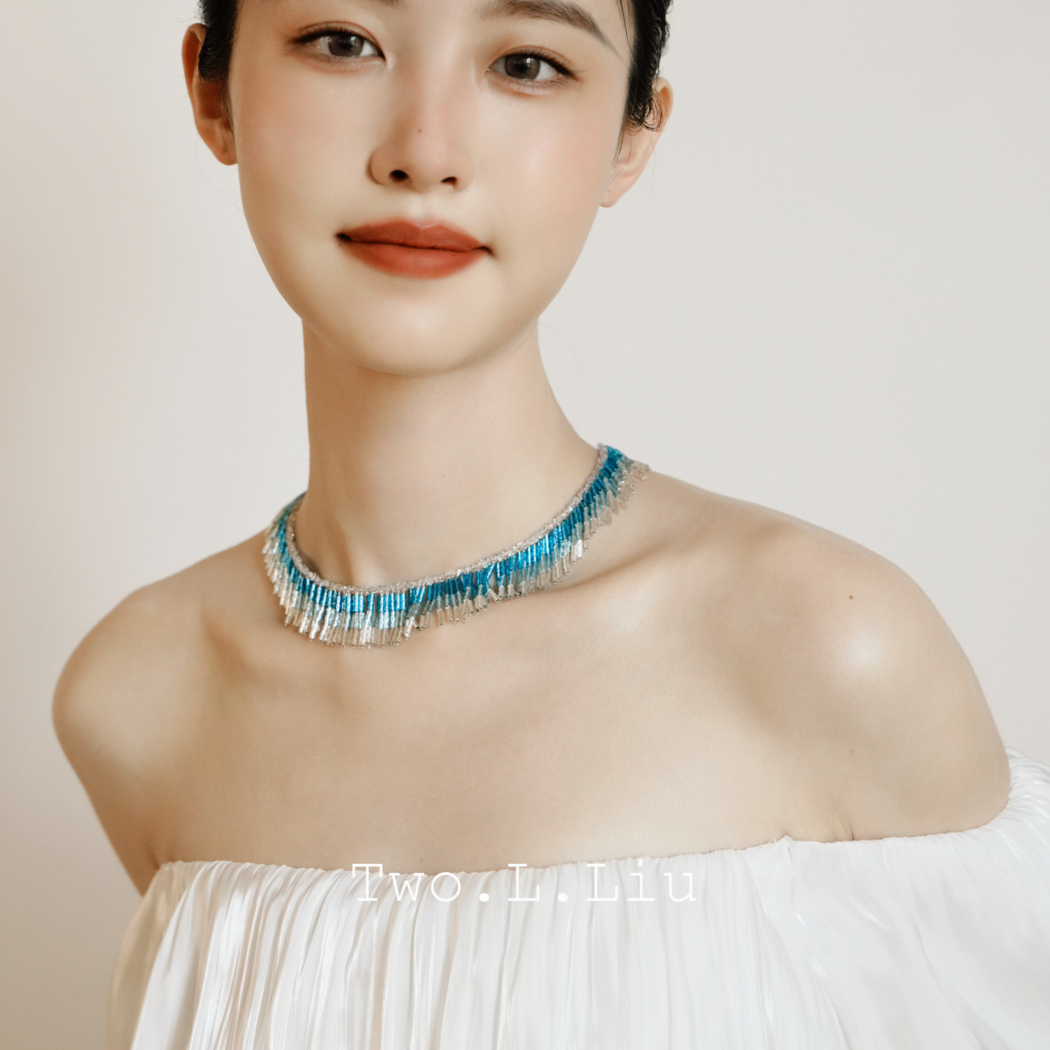 Two.L.Liu只此青绿新中式系列蓝色流苏项链高级感轻奢小众锁骨链
