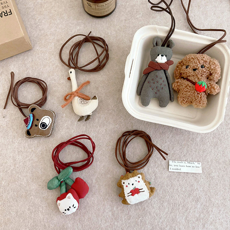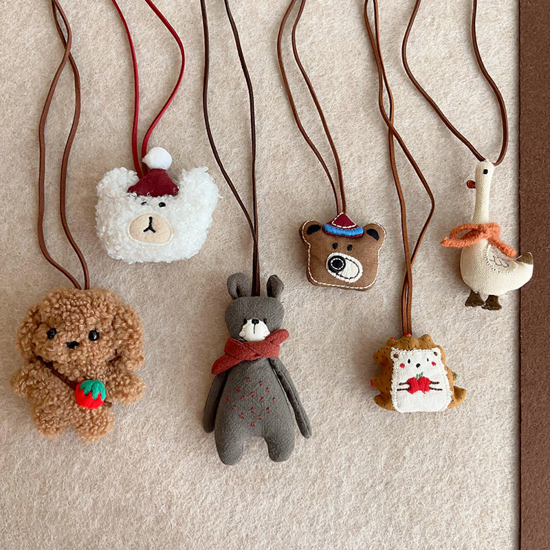 秋冬毛绒布艺小动物项链2025新款可爱卡通饰品配饰个性长款毛衣链