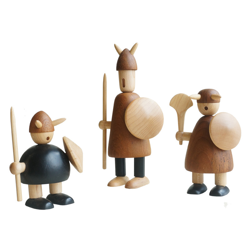 北欧风格简约实木房间酒柜装饰品维京人木质木偶摆件客厅家居饰品