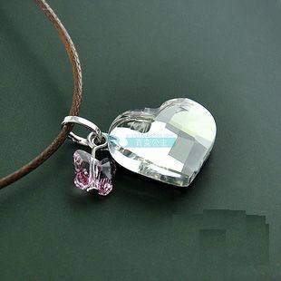 奥地利水晶迷你可爱蝴蝶心吊坠项链项坠玫红色白色紫色877253女
