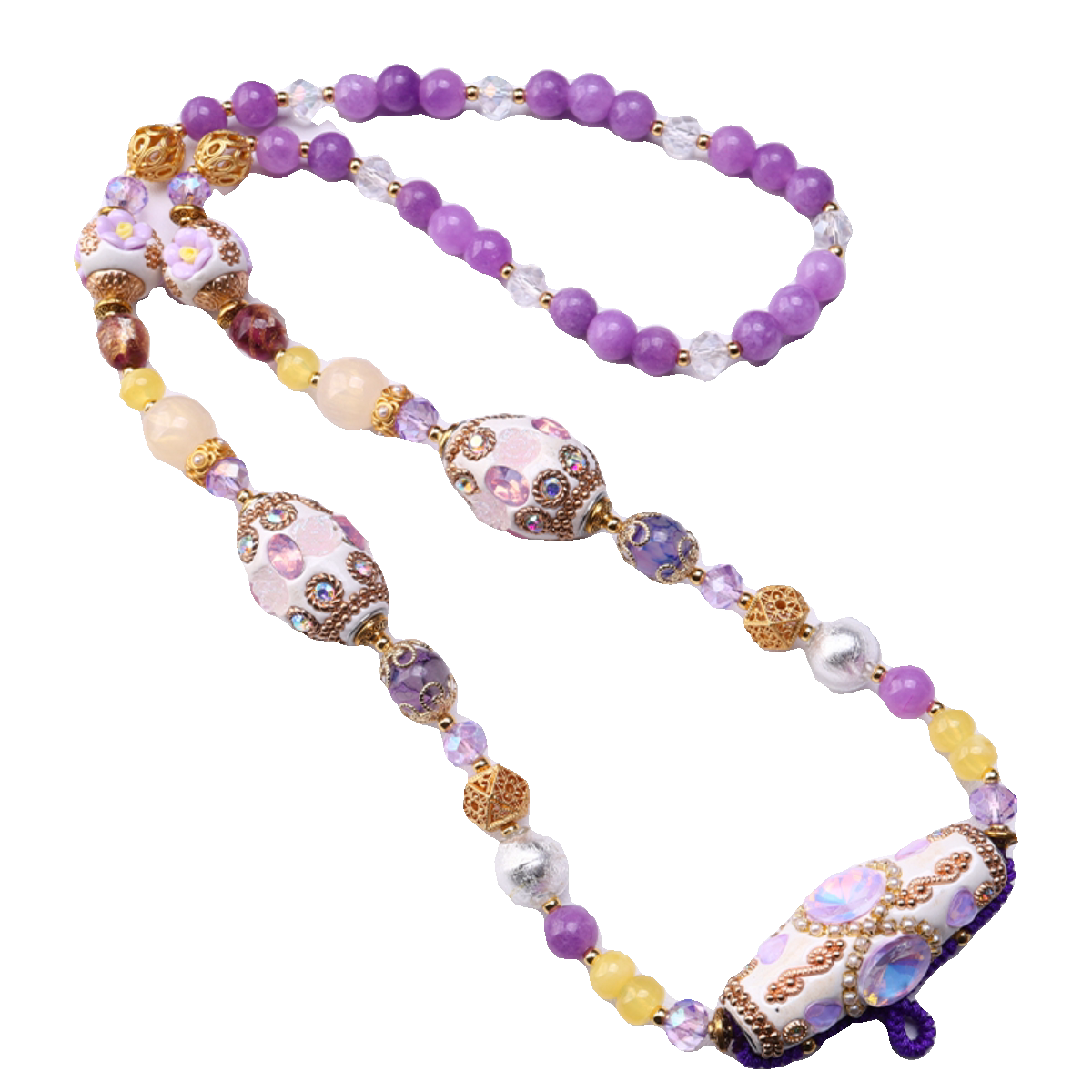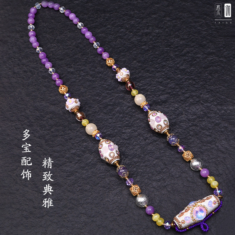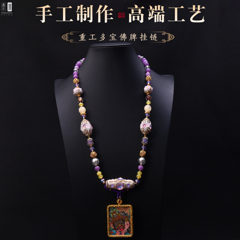 泰国佛牌绳紫色多宝元素重手工佛牌链新中式串珠项链配尼泊尔铜珠