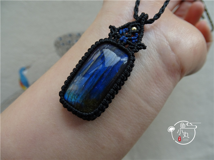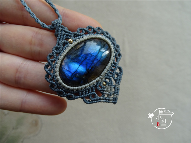 鱼小丸手作南美蜡线手工编织macrame拉长石吊坠毛衣链新年礼物