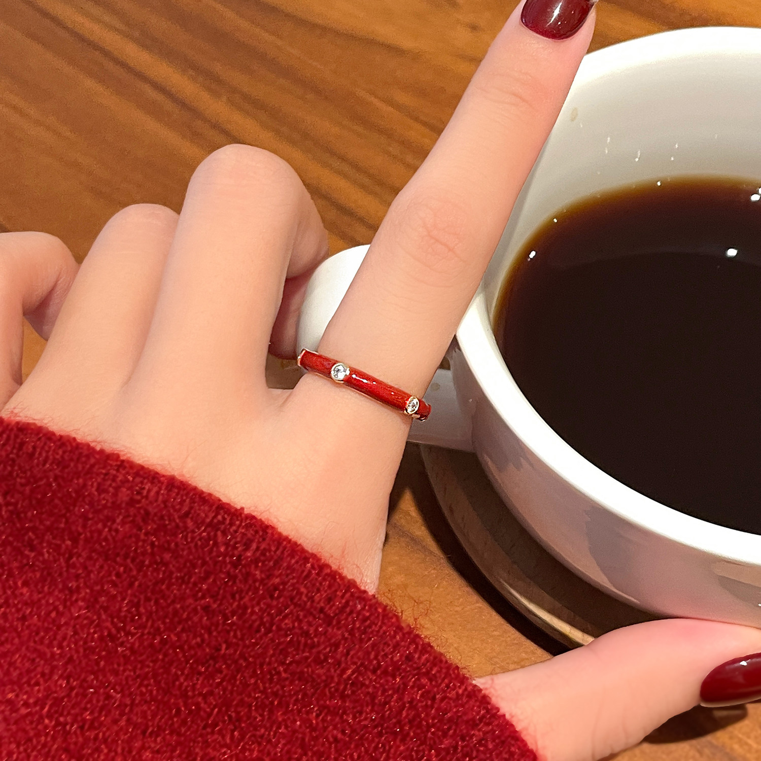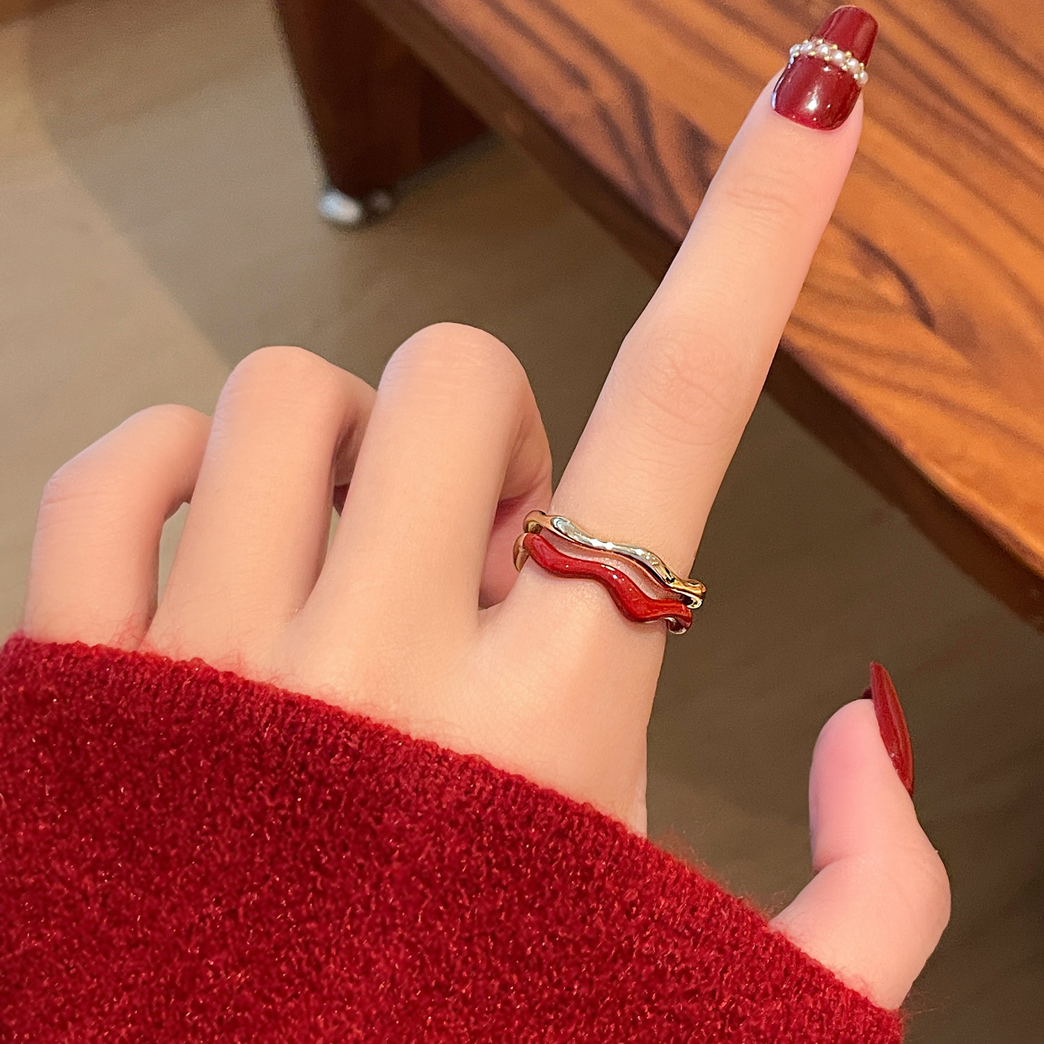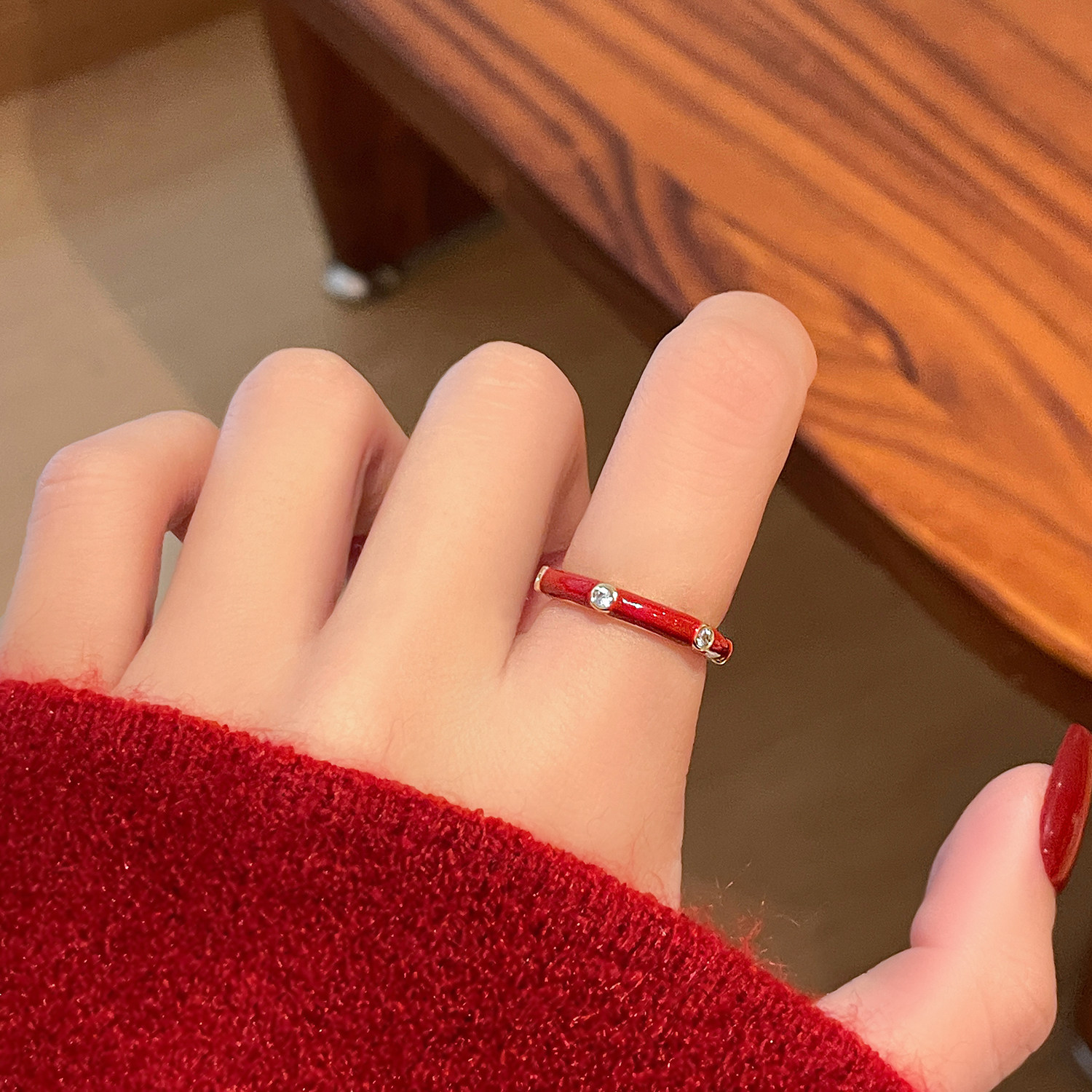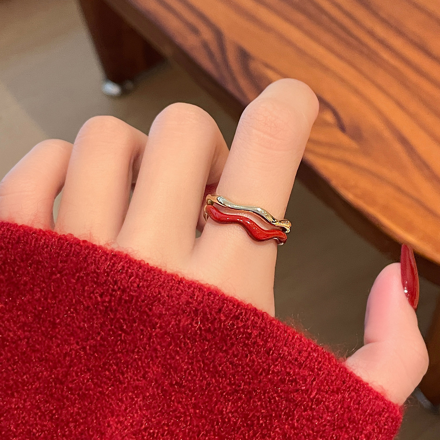 安可拉红开口红色戒指女2026新款爆款轻奢高级感食指指环小众设计