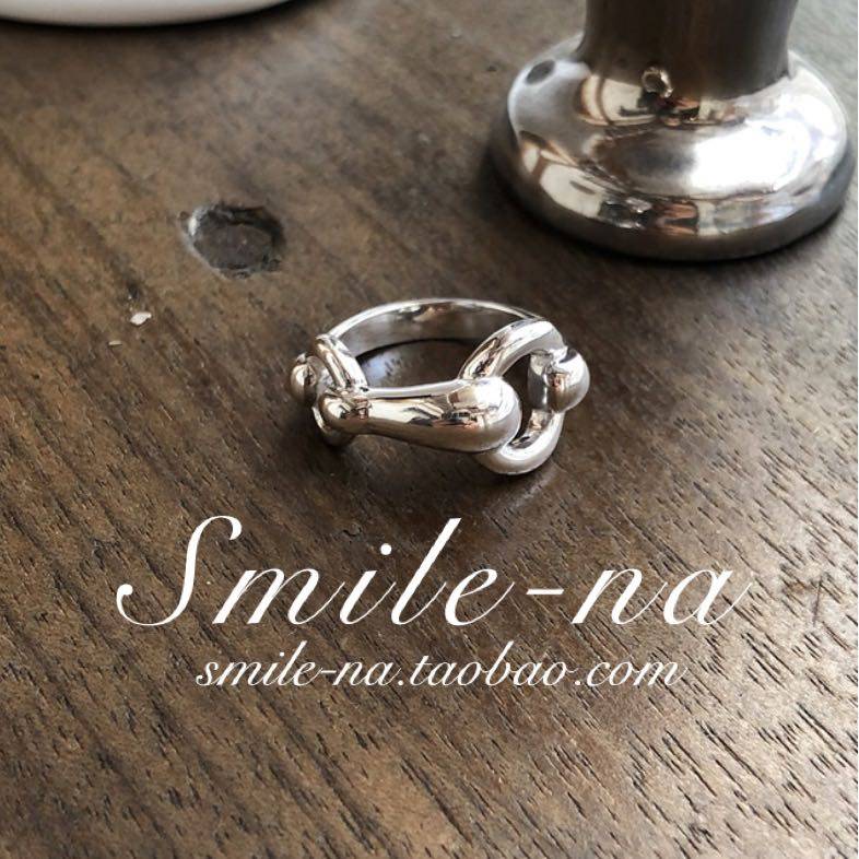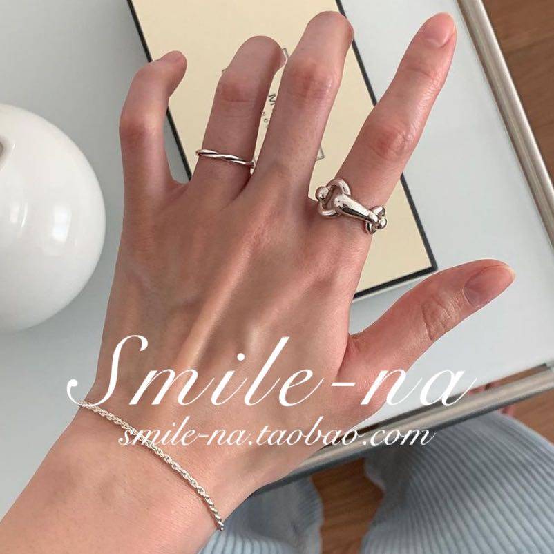 韩国进口ins小众设计款925纯银镂空圆圈简约百搭戒指 实心指环