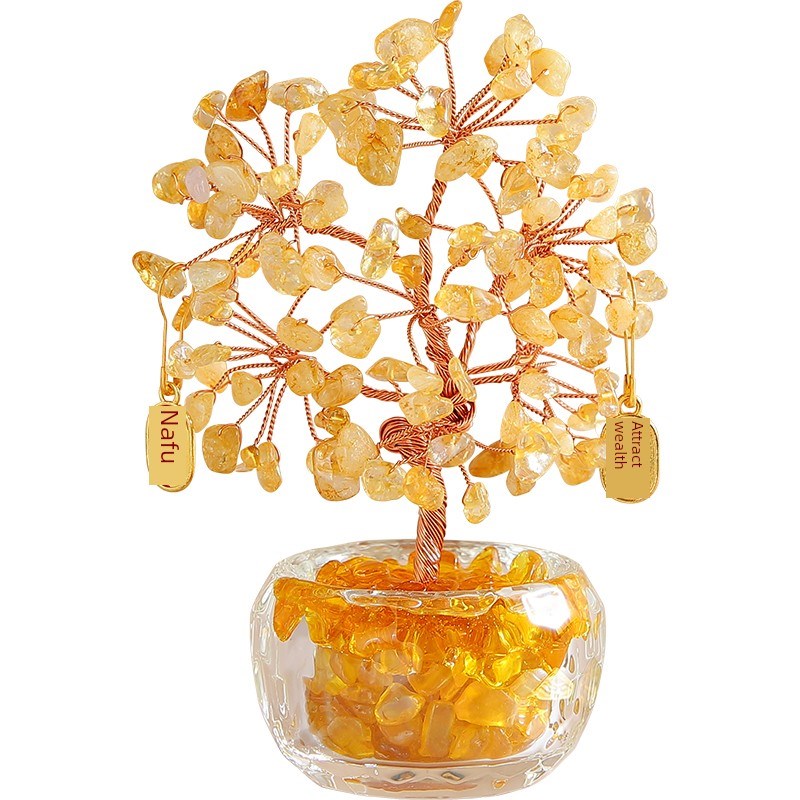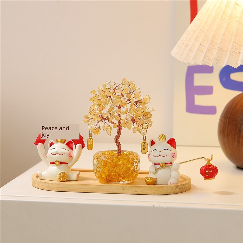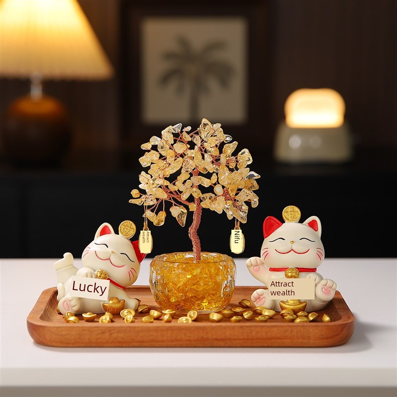 黄水晶摇钱f树招财宝猫入口入口装饰家装办公室招财宝乔迁礼物