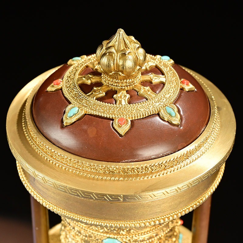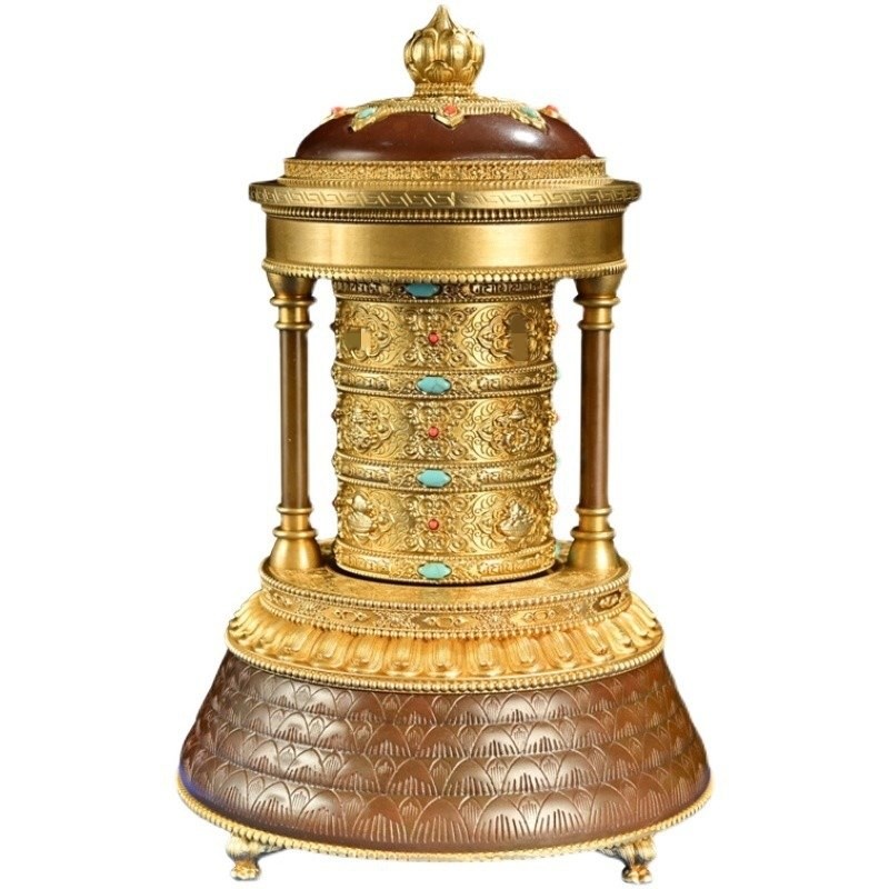 慧宝新品福慧骈臻l电动转轮藏式转动筒装饰摆件金桶转筒插电转金