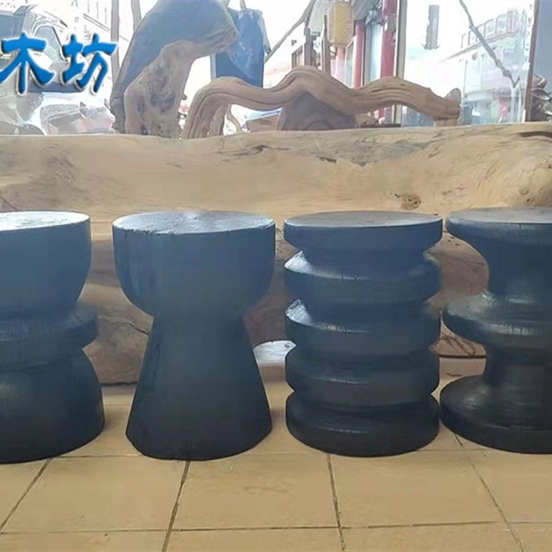 侘寂风实木墩子黑色原木凳设计个性边角几民宿摆件创意圆凳底座