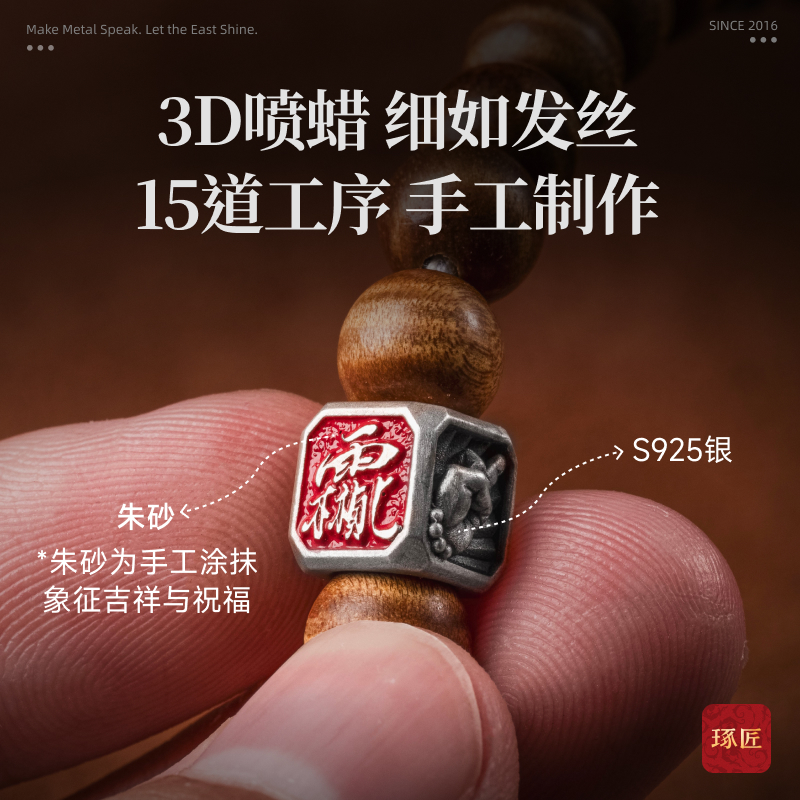 琢匠手诀隔珠手串配饰原创猴头diy银饰配件道系雨渐耳文玩散珠