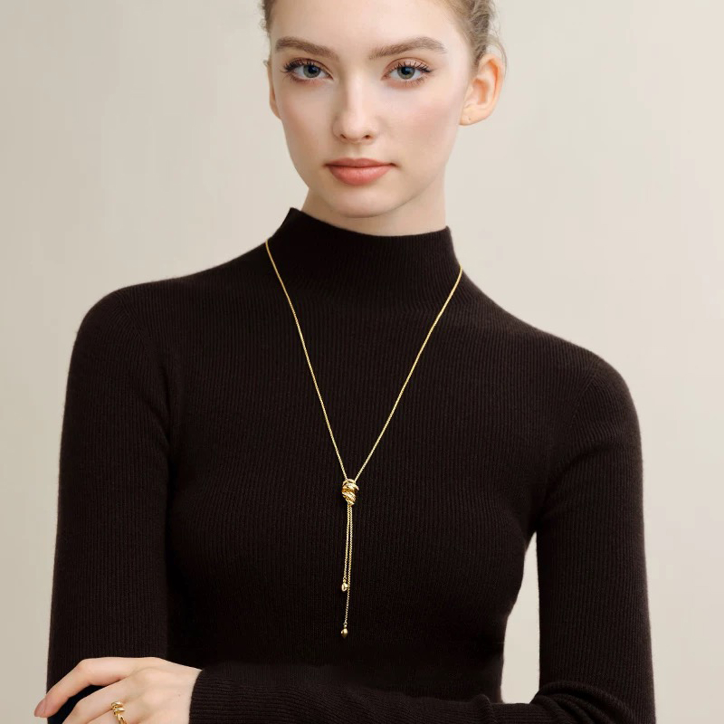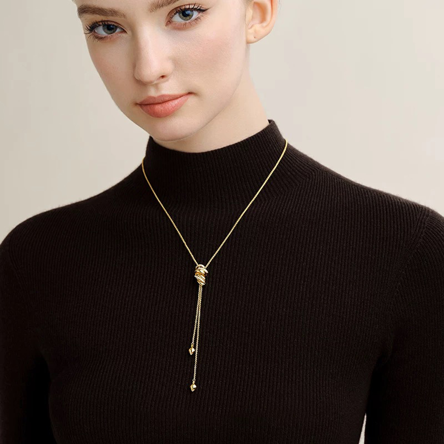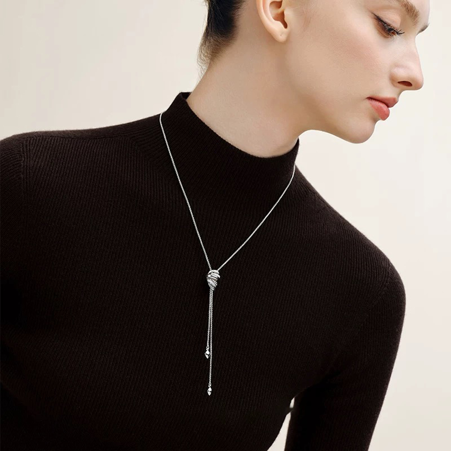 明星同款缠绕丝带项链女小众设计高级感中长款毛衣链可调节锁骨链