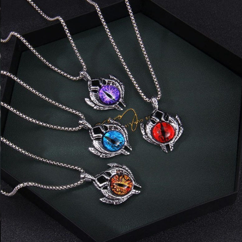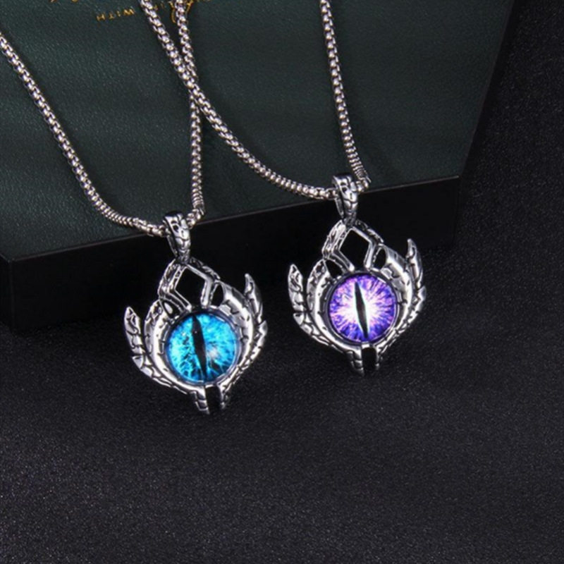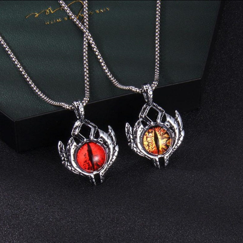 恶魔之眼项链欧美通天邪恶男士钛钢橙色眼睛夜光潮男嘻哈饰品个性