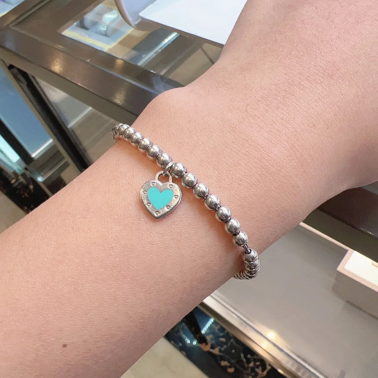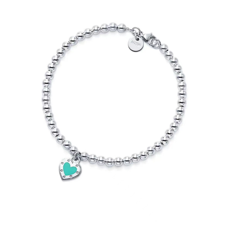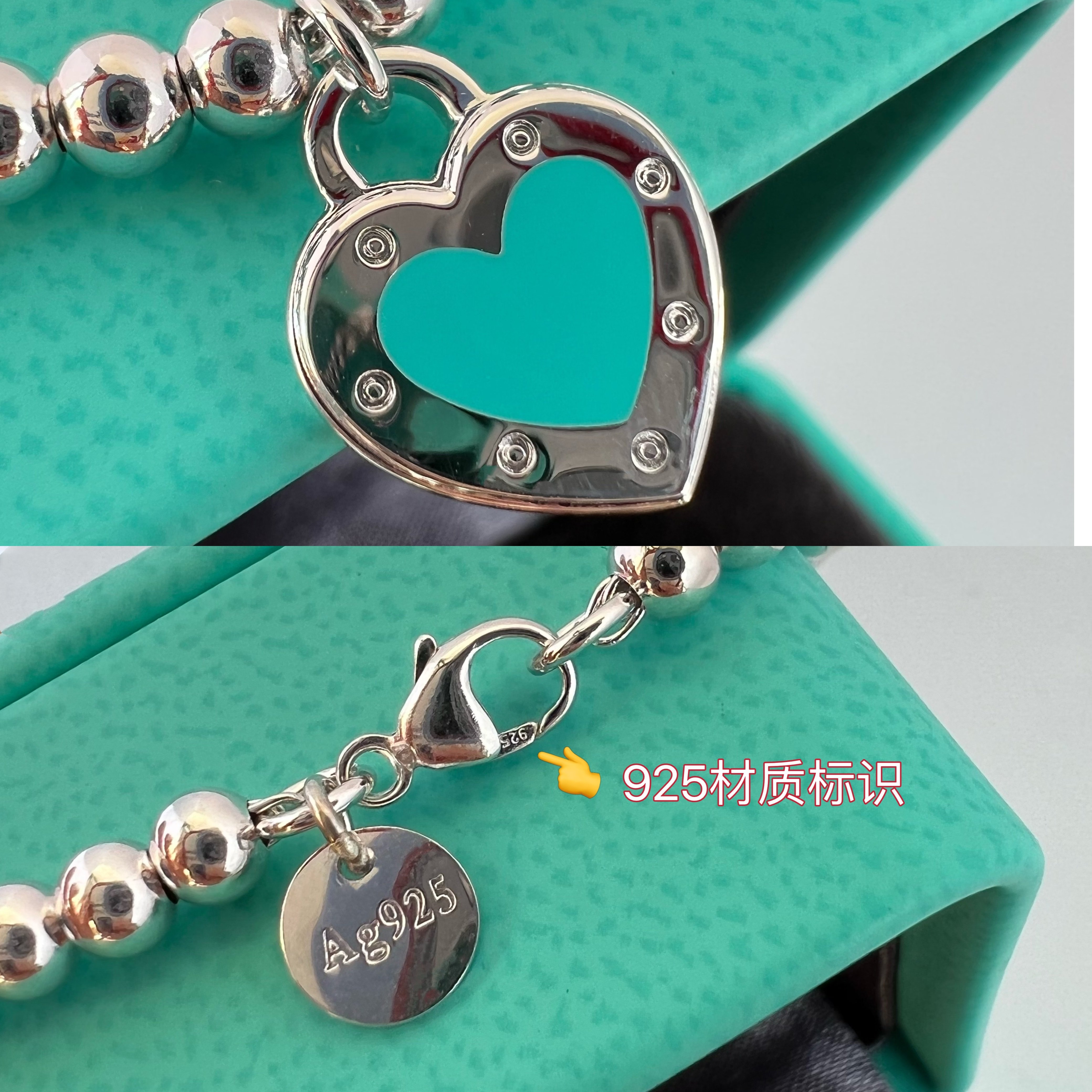 新款蓝色珐琅纯银爱心手链女轻奢小众设计感心形叠戴银珠链送闺蜜