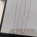 轻奢18K玫瑰金高圆圆同款交叉项链白贝母X字母送女友锁骨链吊坠