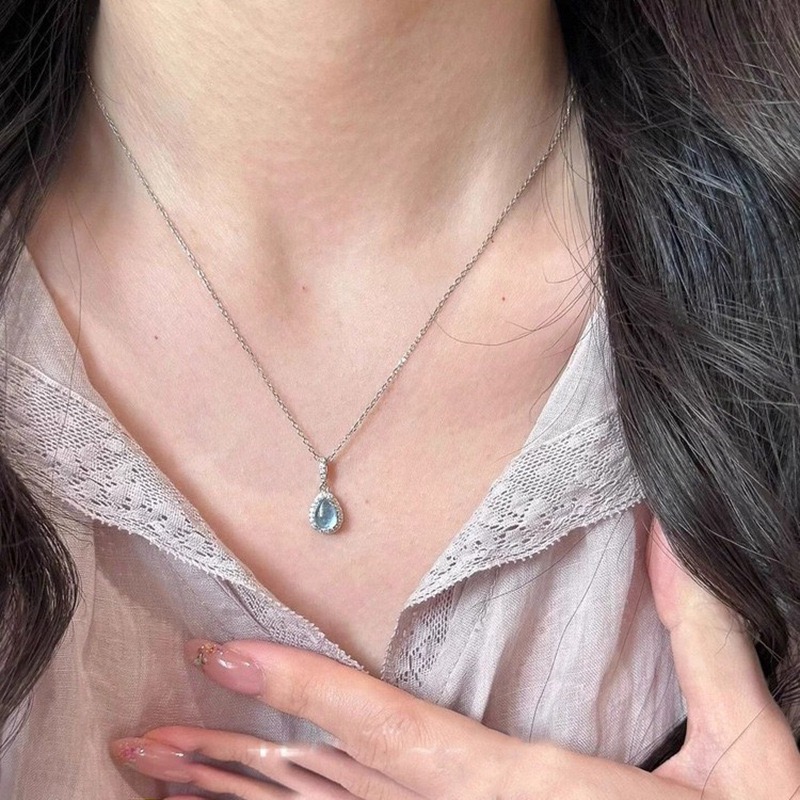 小红书爆款人鱼之泪项链女精致轻奢高级感蓝色水滴锆石吊坠锁骨链