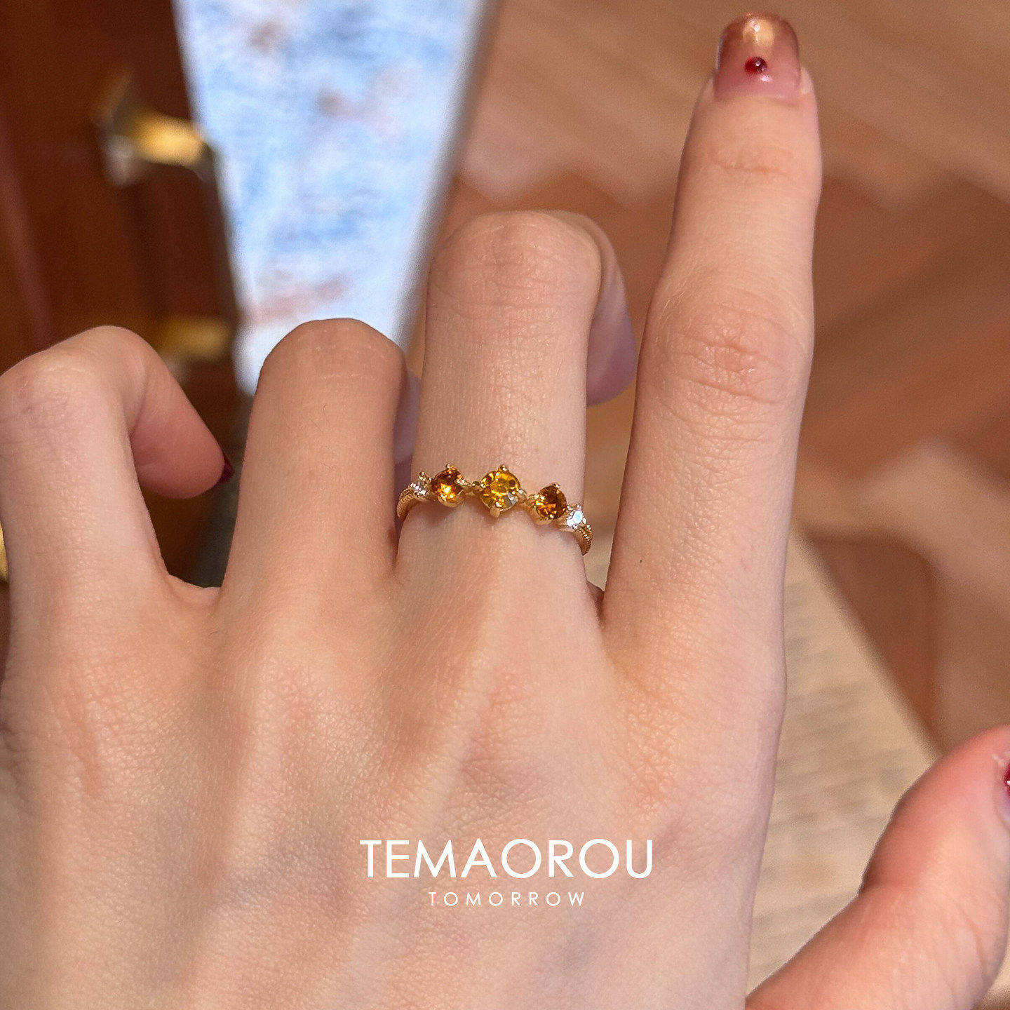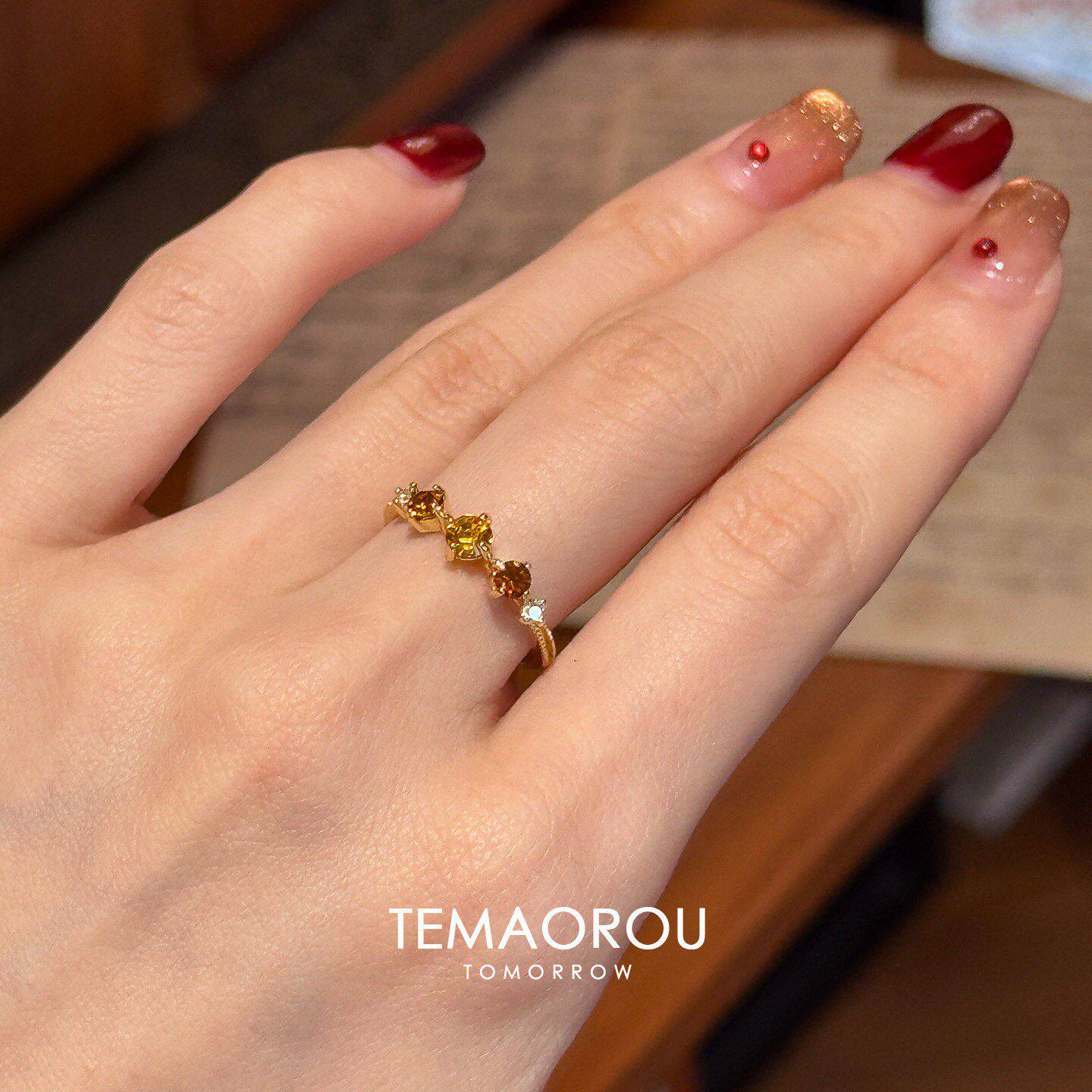 三钻橘橙色仿石榴石金色戒指女2026新款高级感食指戒小众设计指环