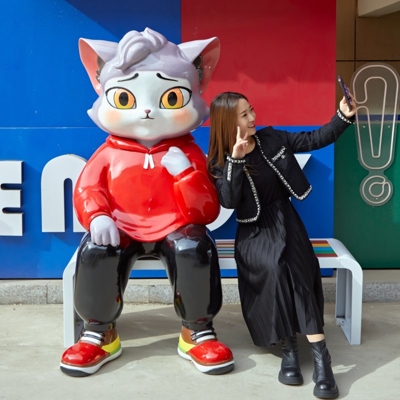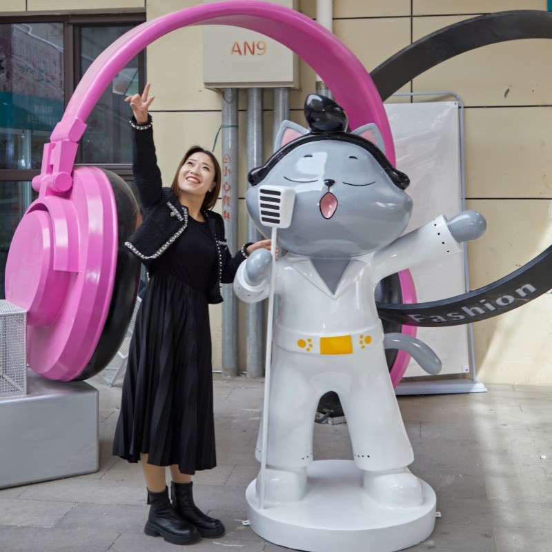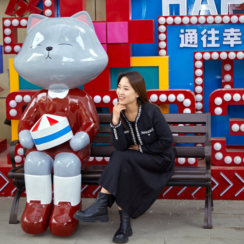玻璃钢雕塑卡通猫网红打卡商场店门口户外休闲商业街装饰摆件定制