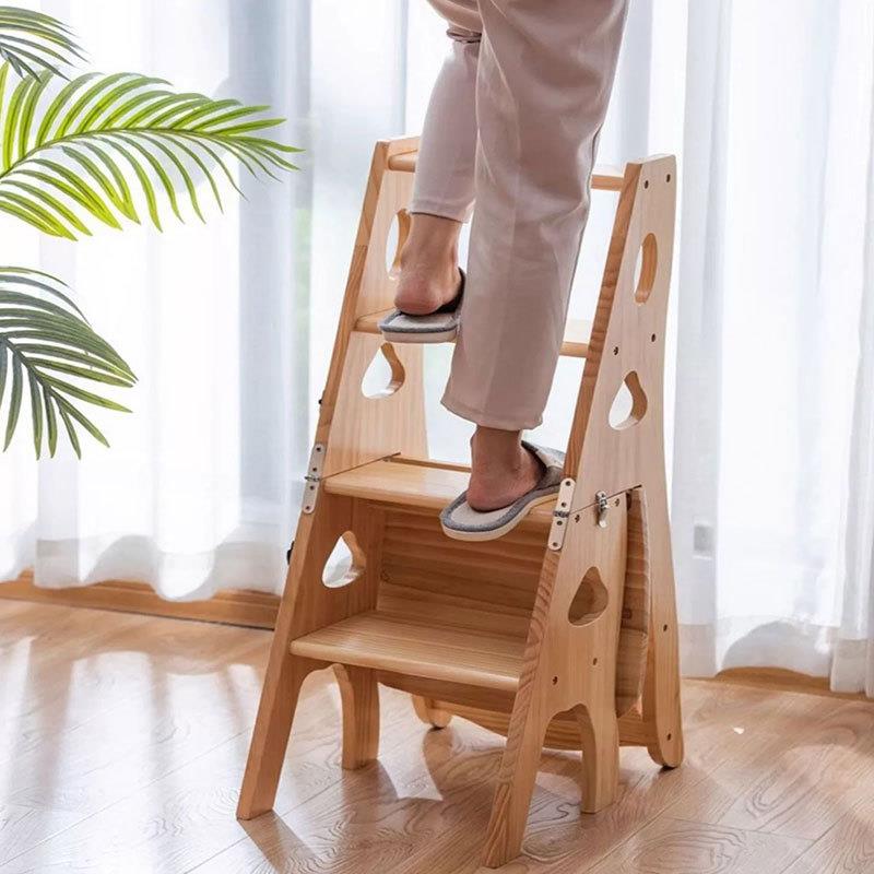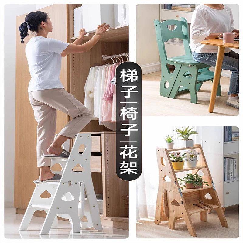 实木梯子多功能折叠梯椅凳子两用椅子室内登高楼梯四步家用人字梯