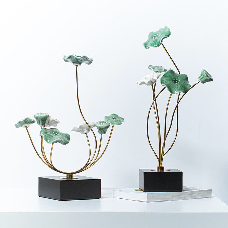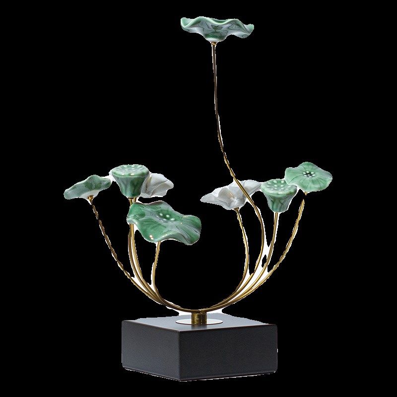 新中式荷叶莲花轻奢创意桌面摆件家居客厅玄关置物架办公室装饰品