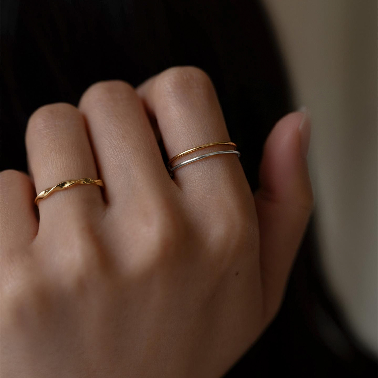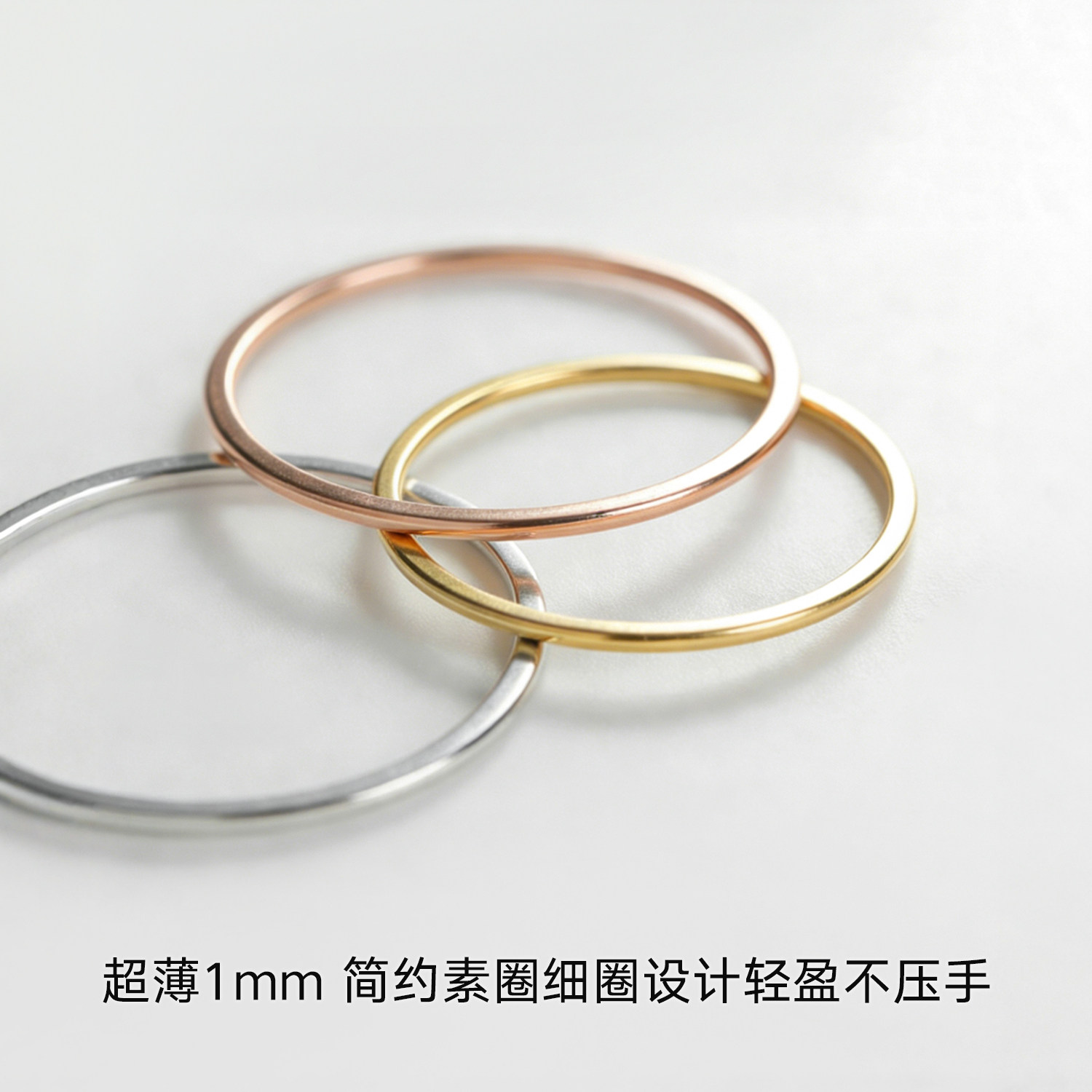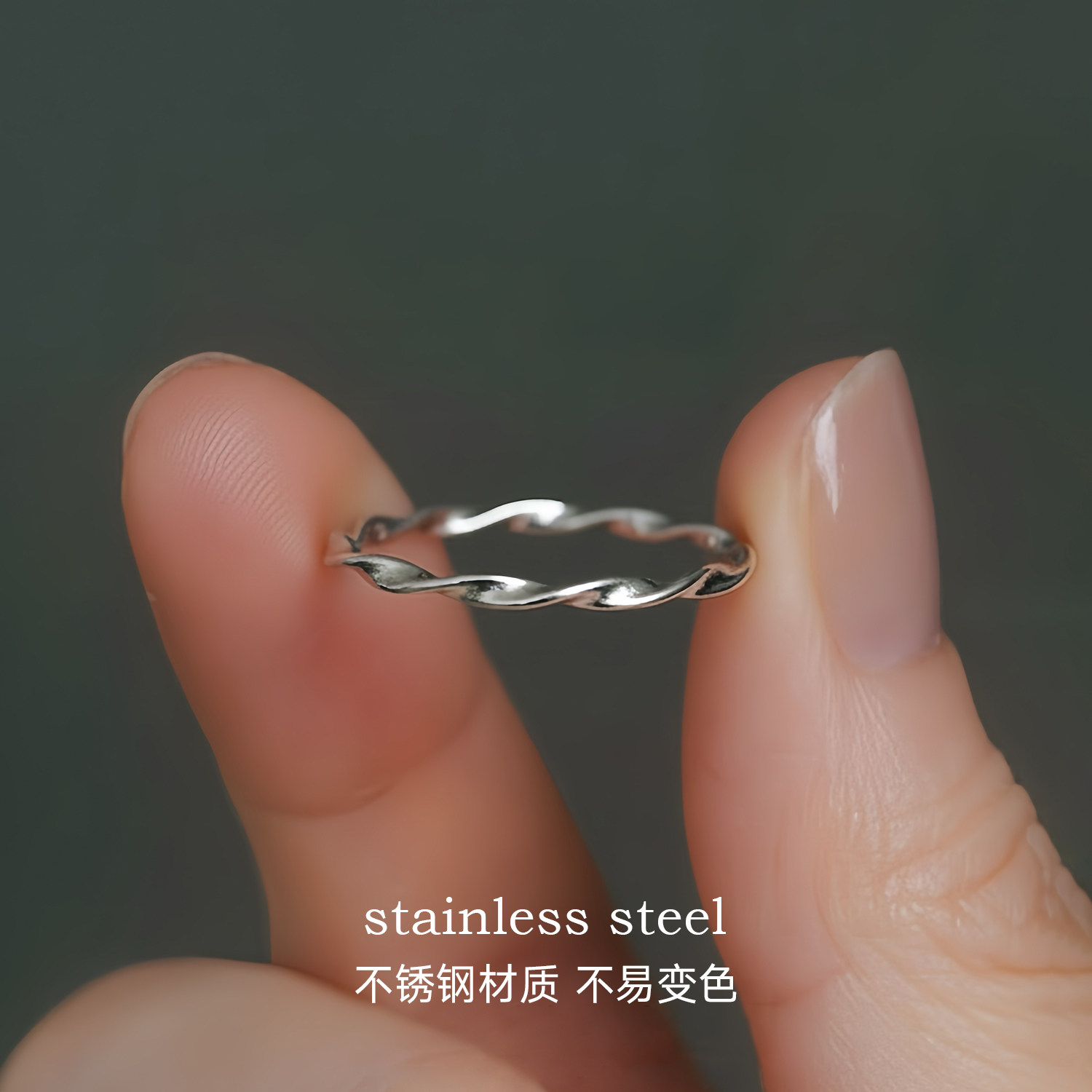 OSEWAYA戒指日系素圈细圈扭纹指环女小众设计不锈钢百搭关节戒