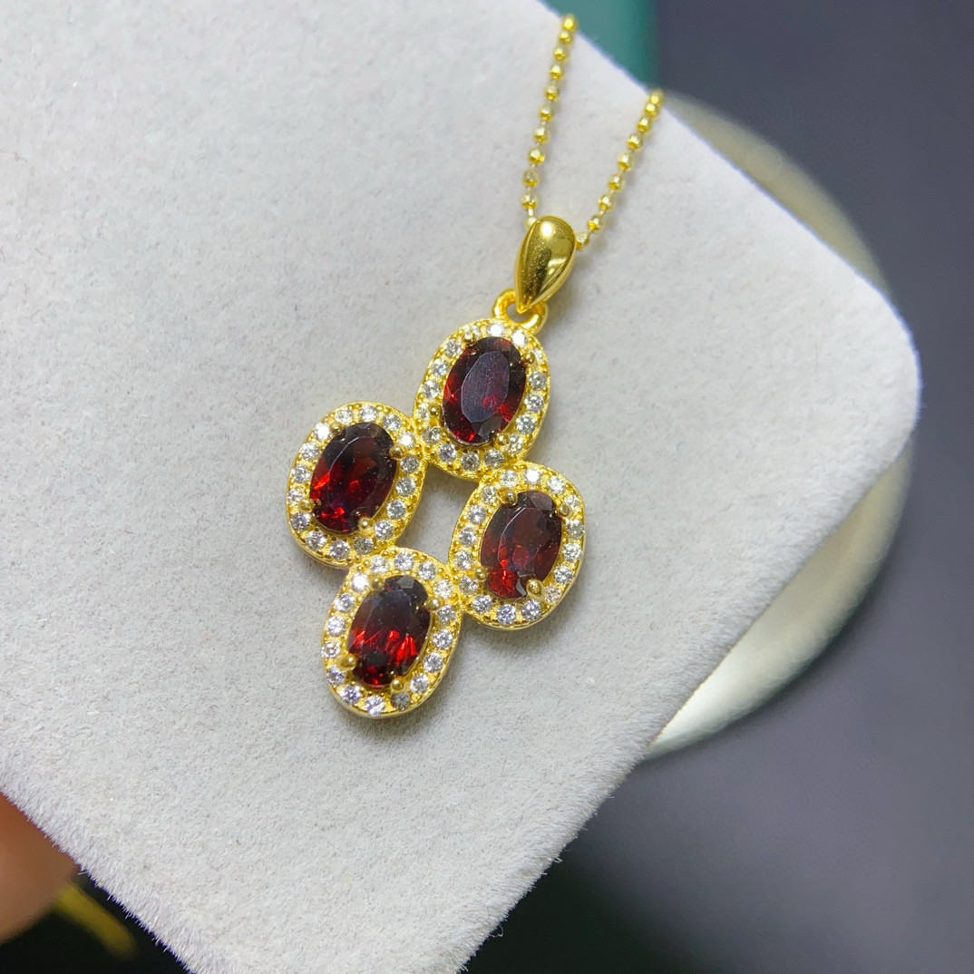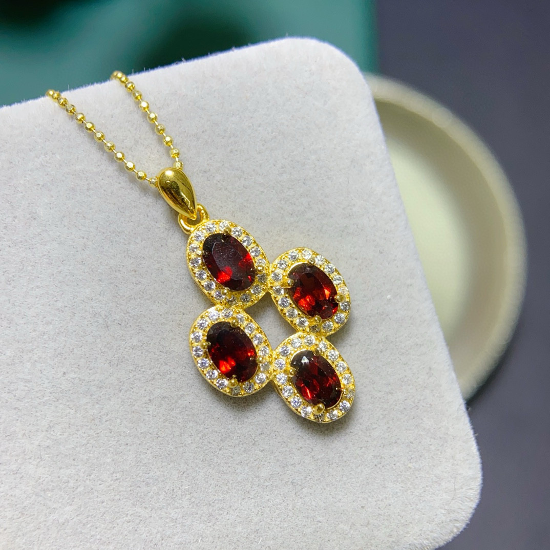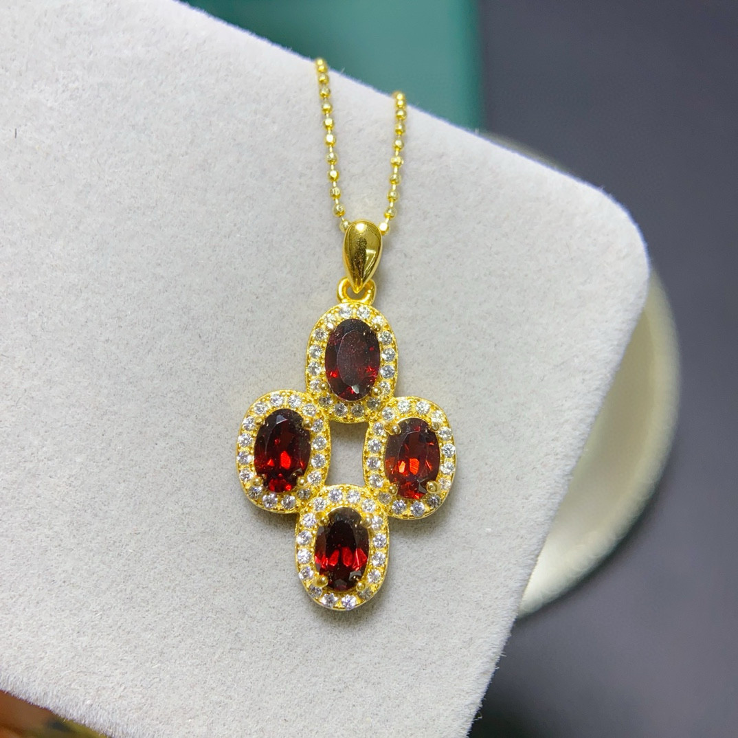 清仓捡漏天然石榴石项链S925纯银酒天然红色宝石吊坠简约