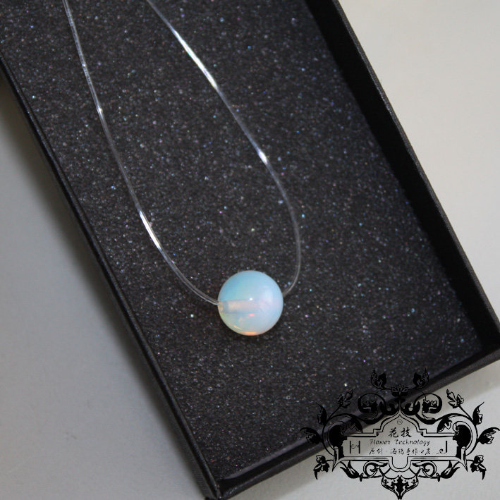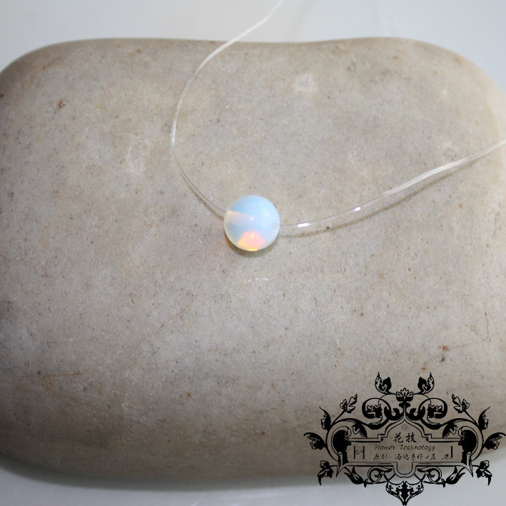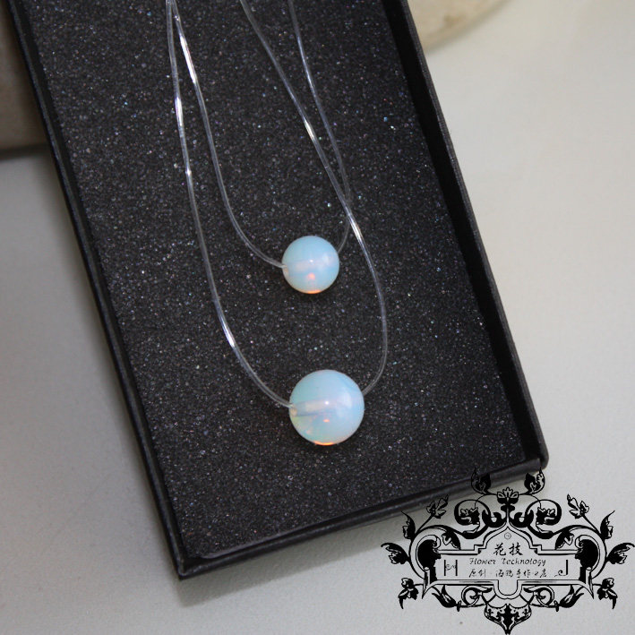 蛋白石隐形透明鱼线锁骨项链蛋白色圆珠吊坠饰品时尚日韩流行颈链