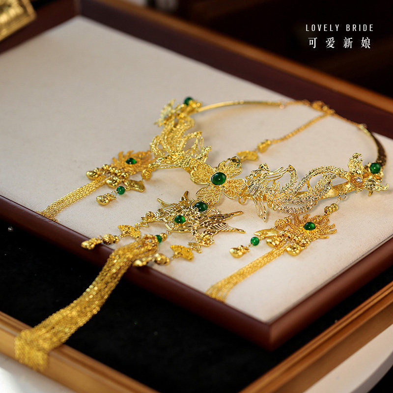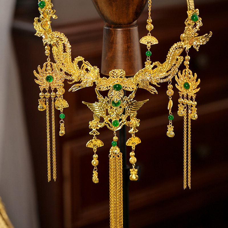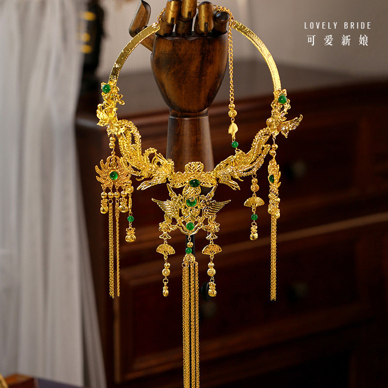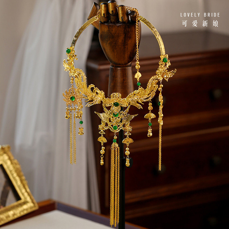 中式秀禾新娘项圈2025新款复古金绿色重工高级古典龙凤褂汉服项链