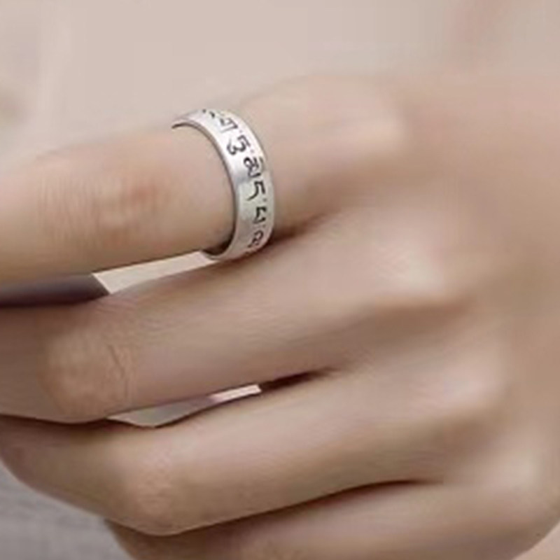 实心西藏六字真言经文开口戒指环内壁国风祥云纹戒指