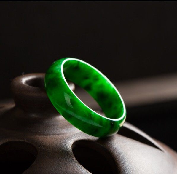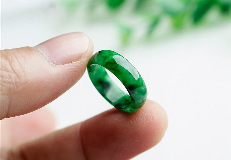 翡翠色玉石戒指圆圈指环全阳绿色冰种男女戒指扳指百搭款戒指简约