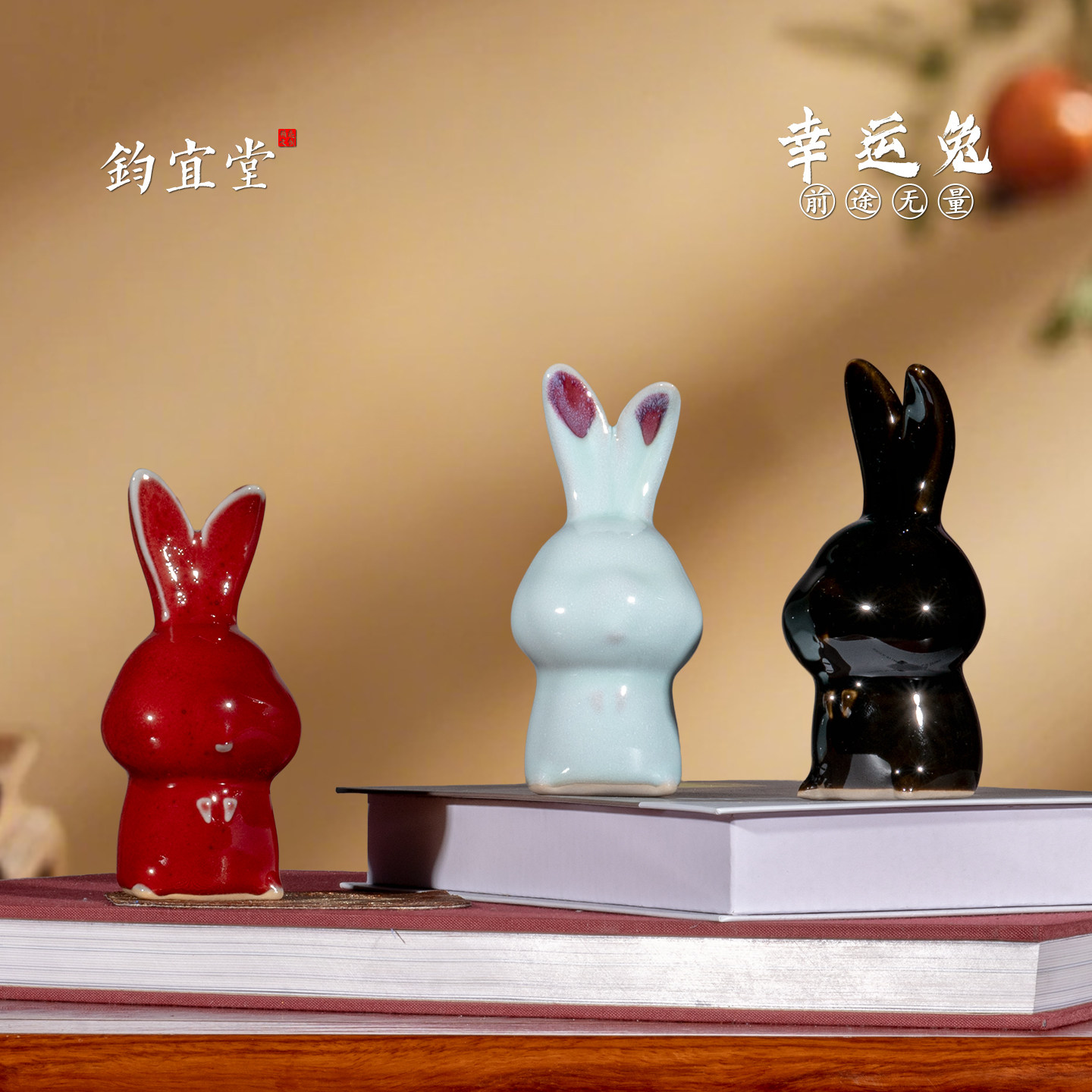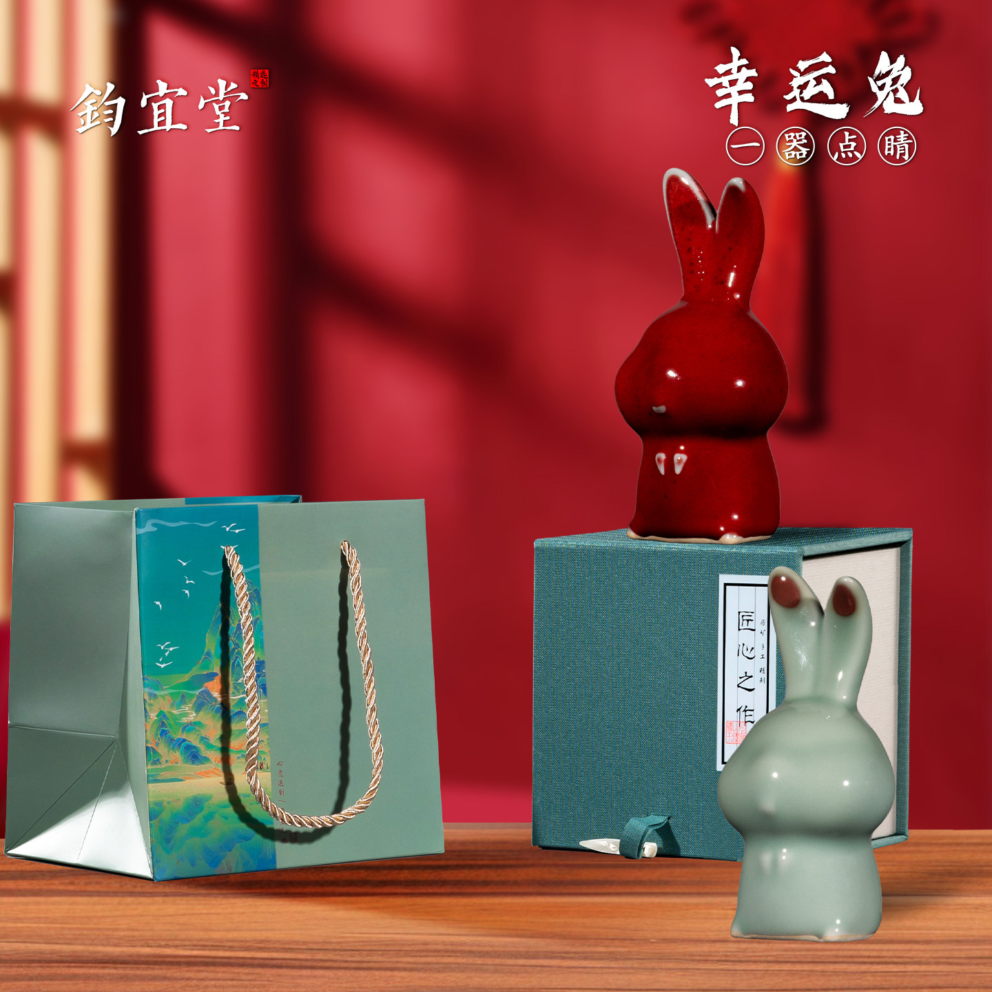 钧瓷文创幸运兔摆件工位治愈情绪招财纳福红色陶瓷女生礼物高级感