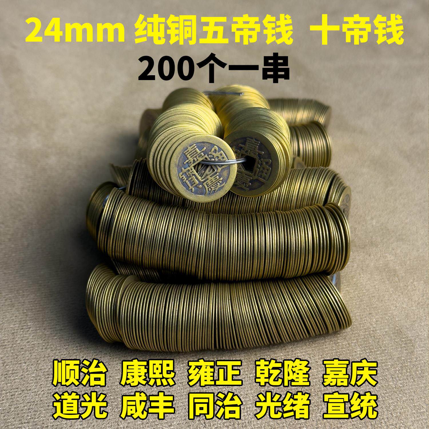 五帝钱铜钱串彷古钱币入户门出入平安康熙顺治干隆通宝散钱压门槛
