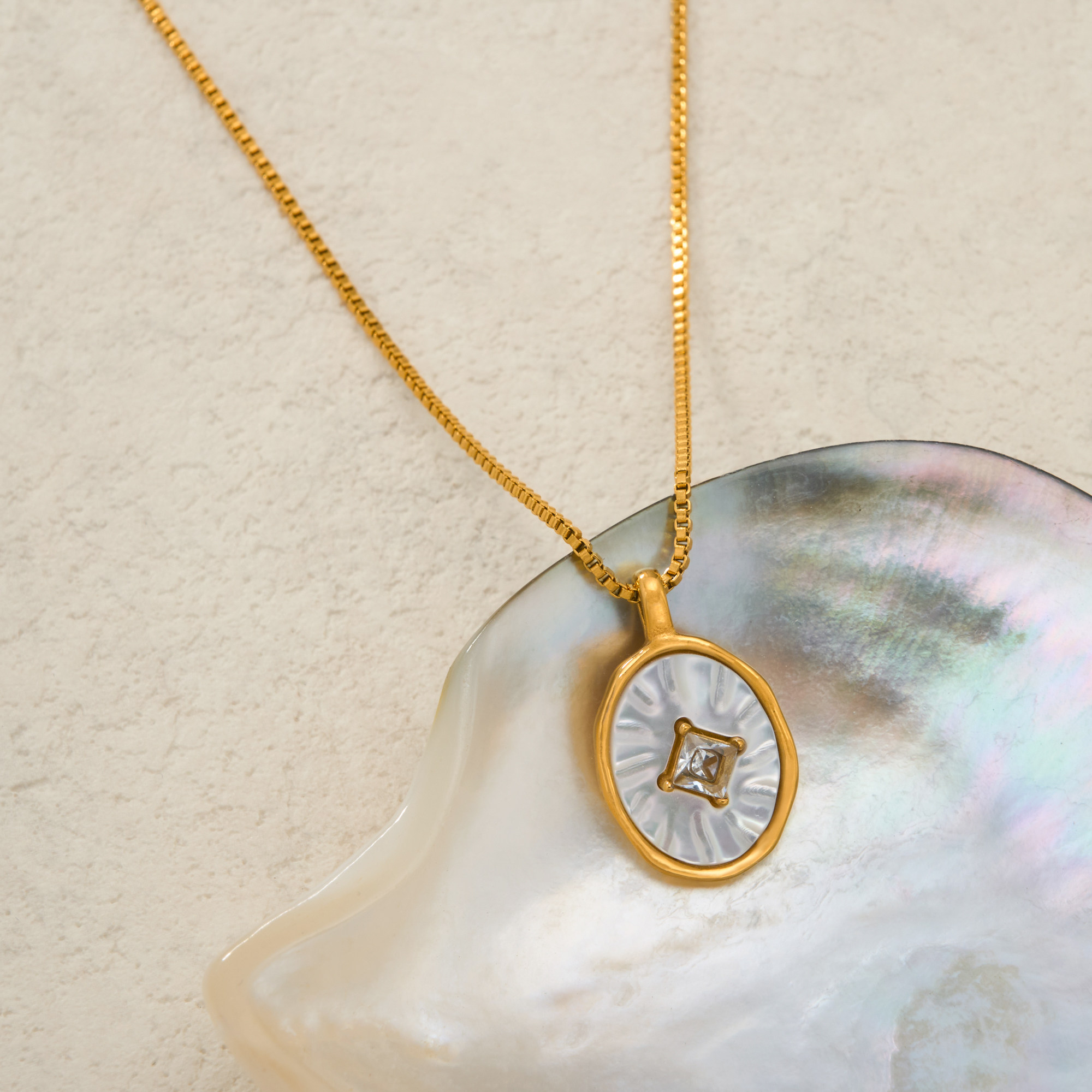 【DASEIN】白色贝壳方钻吊坠项链玉米链18k镀金防过敏小众高级感