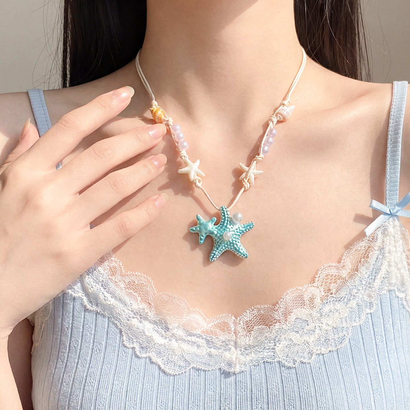 海边度假风薄荷绿色海星项链女高级感小众设计百搭锁骨链颈链配饰