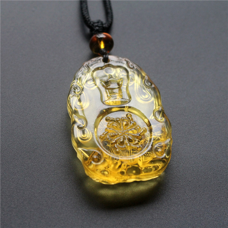 原创设计佛像九华山地藏王菩萨谛听坐像水晶唐彩琉璃项链吊坠饰品