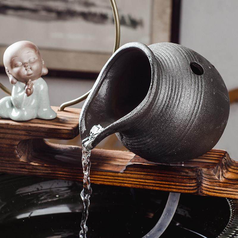 中式陶瓷鱼缸循环小号自制喷泉出水口装饰摆饰流水器配件假山陶罐