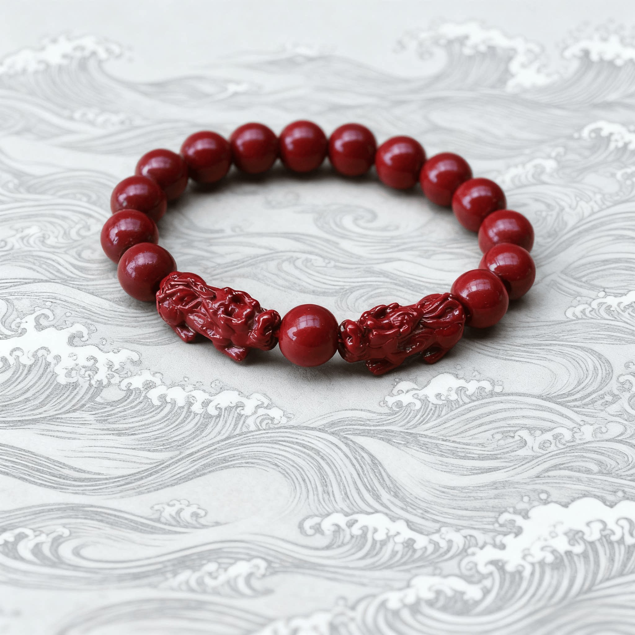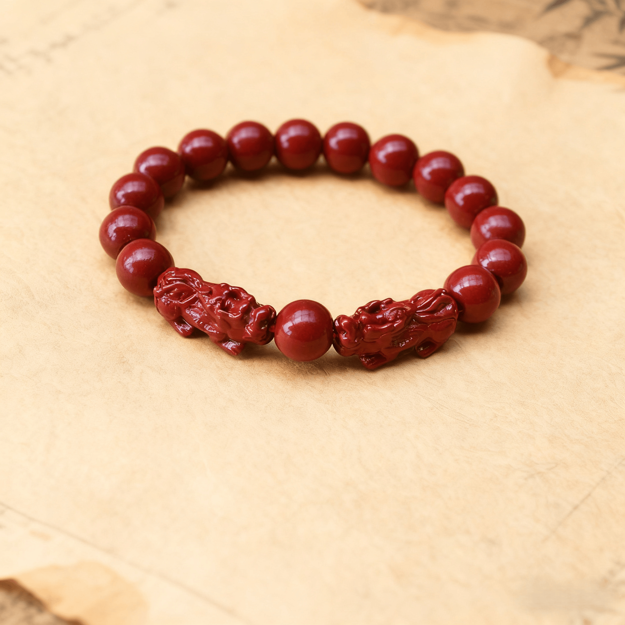 朱砂貔貅手链单圈紫金砂圆珠手串男女情侣本命年手饰品送朋友礼物