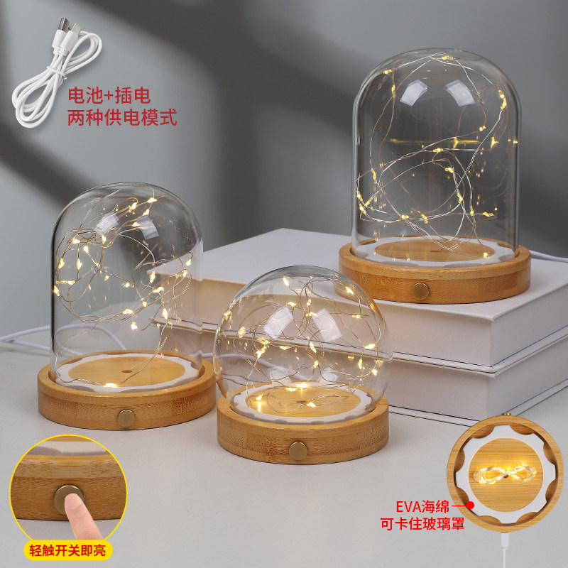 插电和侧面触摸开关永生花串灯玻璃罩发光带灯diy手办防尘玻璃罩