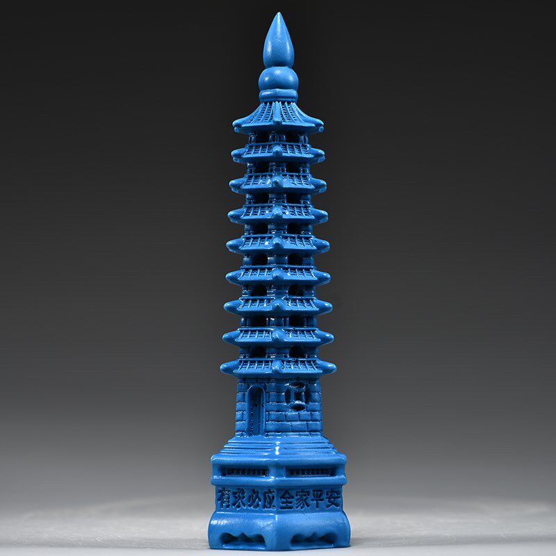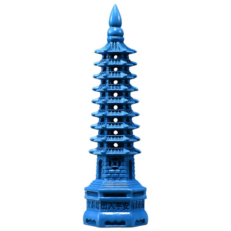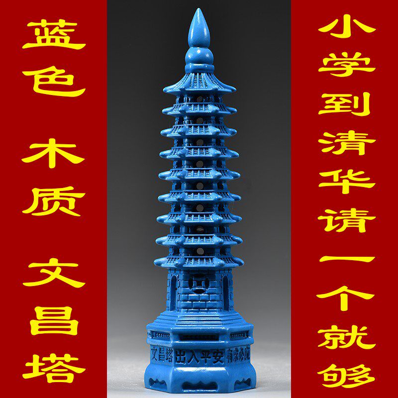 蓝色木质雕刻9层九层文昌塔摆件实木13层十三层木头文昌塔工艺品