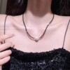 UNBEATEN黑色水晶珍珠项链女高级设计感小众锁骨链2025年新款爆款