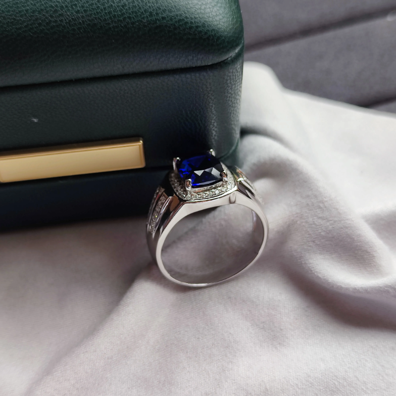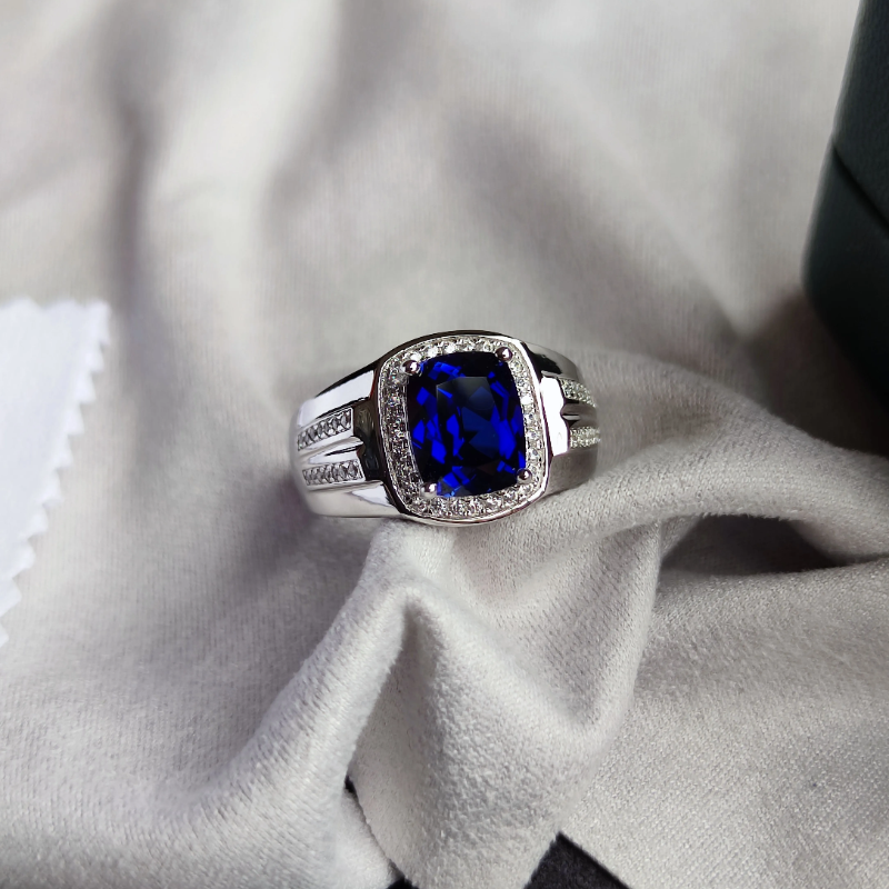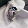 男士戒指925纯银镀18K金蓝宝石男戒时尚个性潮人食指环开口可调节