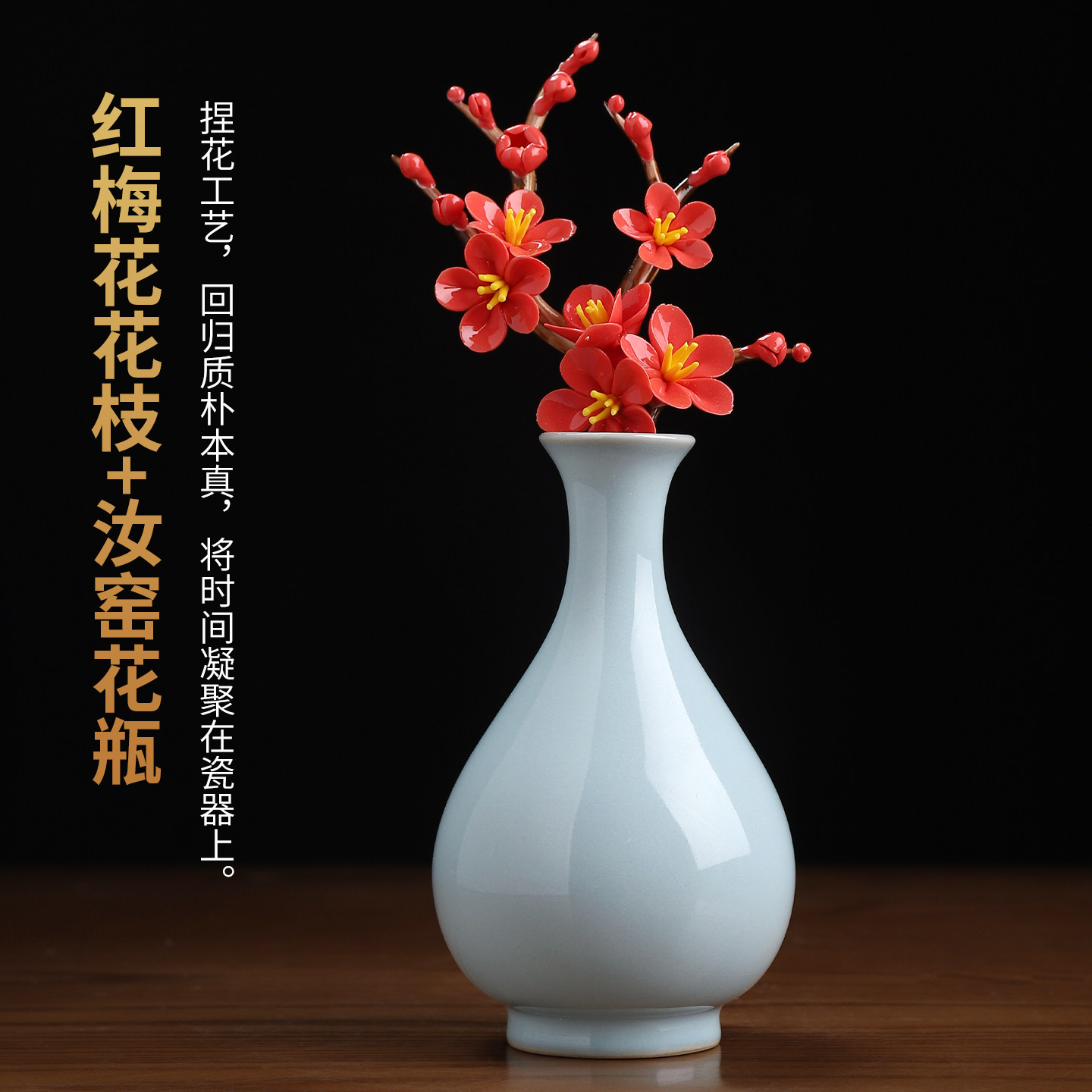 东方泥土汝窑陶瓷花瓶家居插花摆件客厅博古架古典中式花枝装饰品