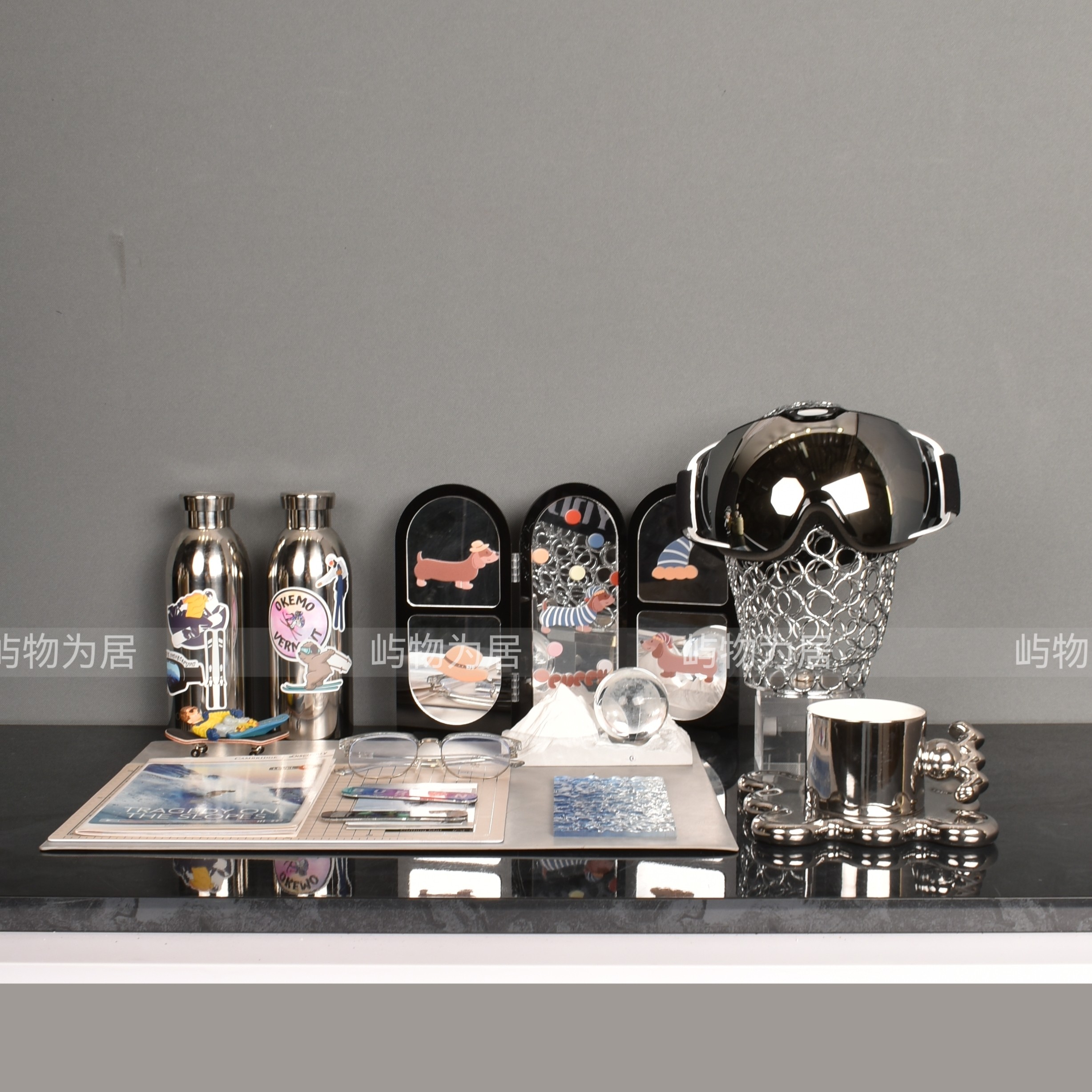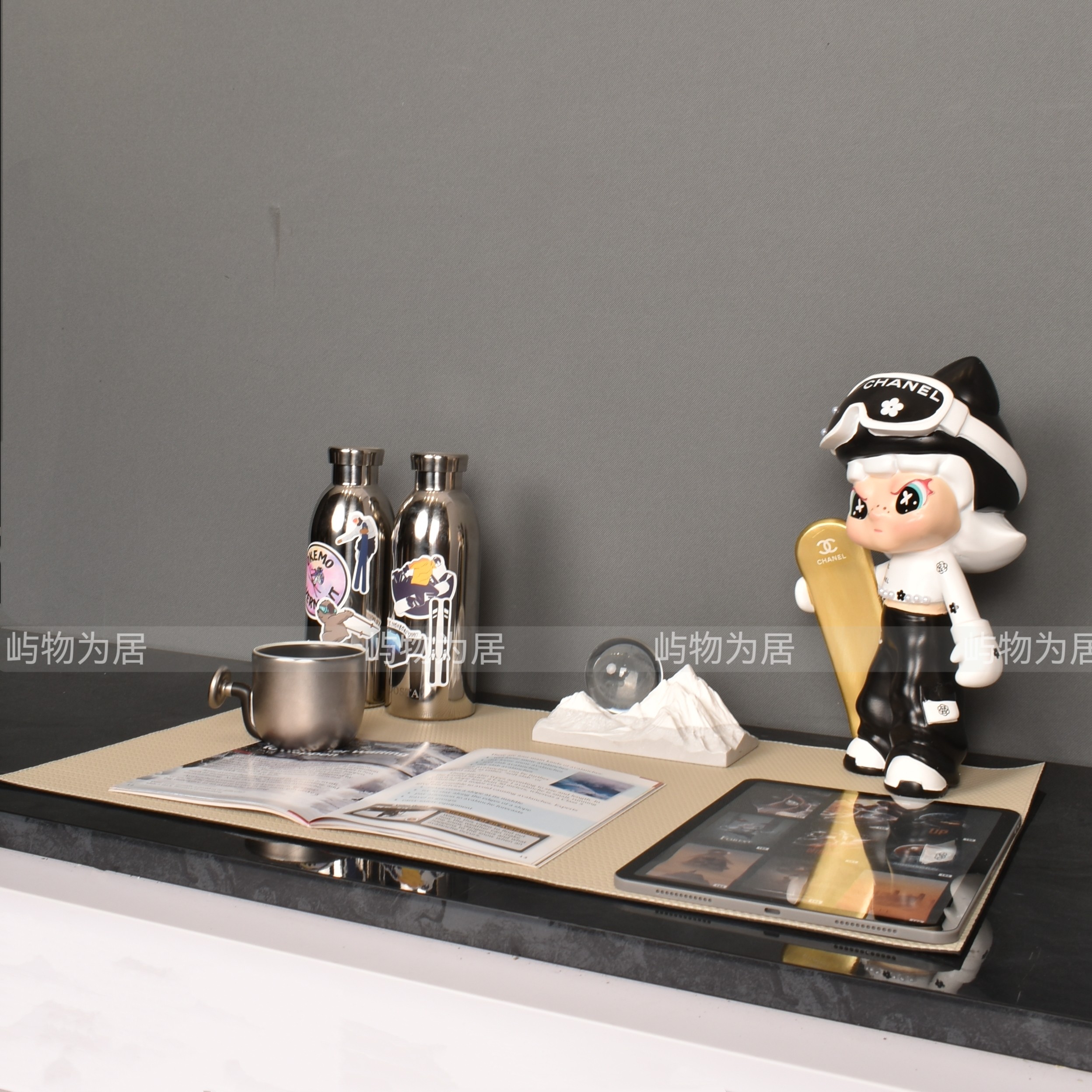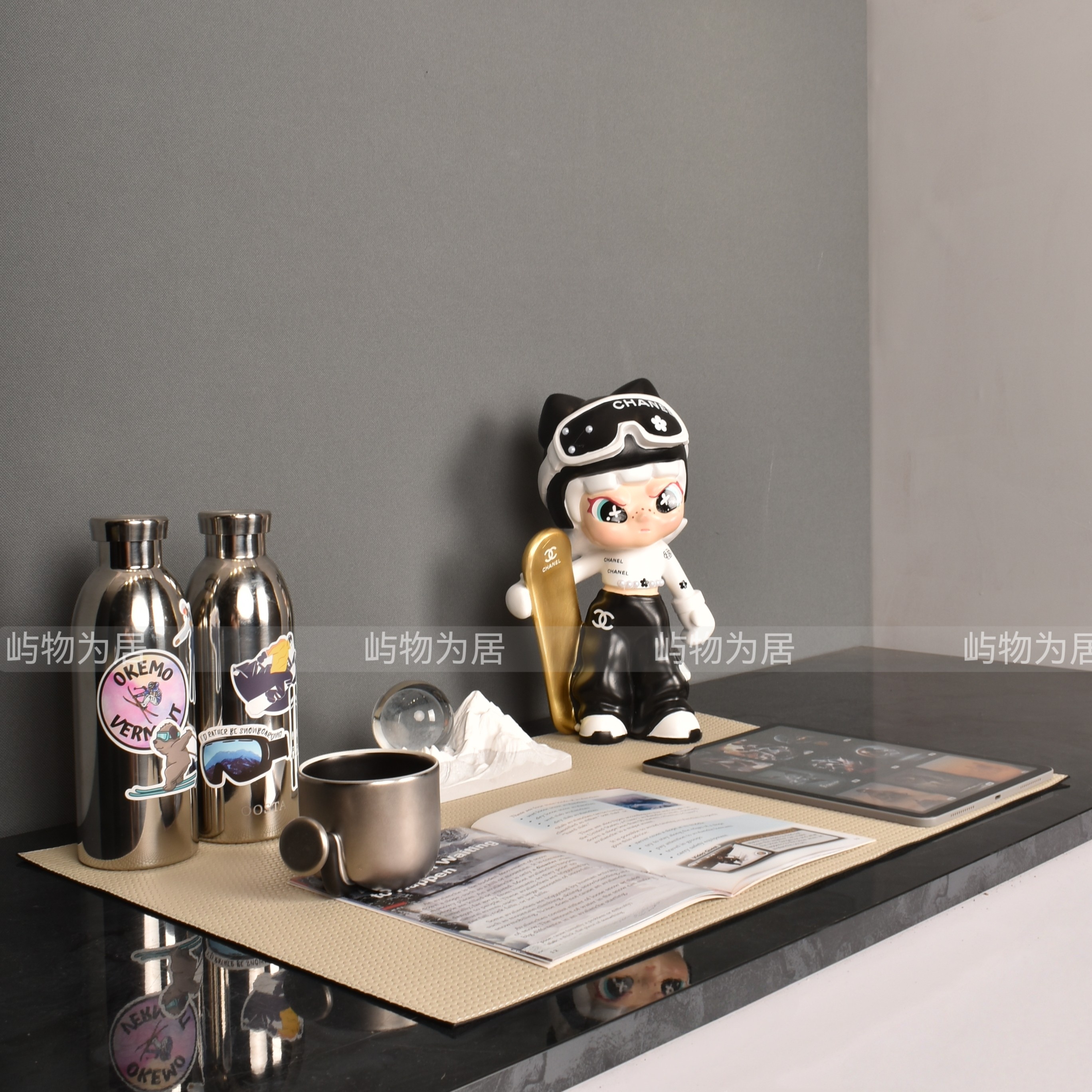 现代样板房间儿童房女儿房书桌滑雪滑板主题饰品摆件组