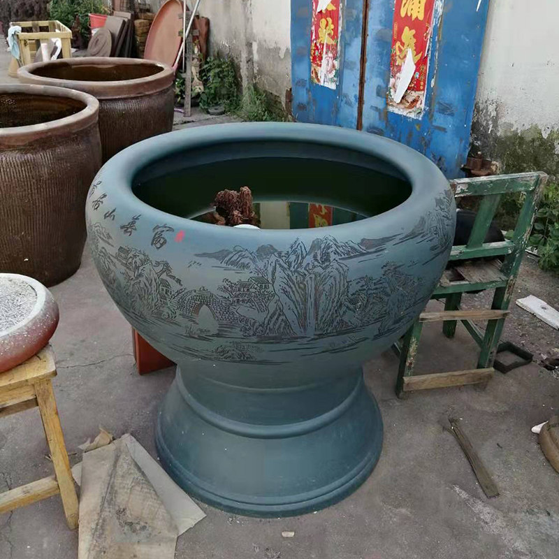 宜兴紫砂金鱼缸 大号 名家正品 宽口绿泥 荷花缸 鲤鱼缸水缸特价