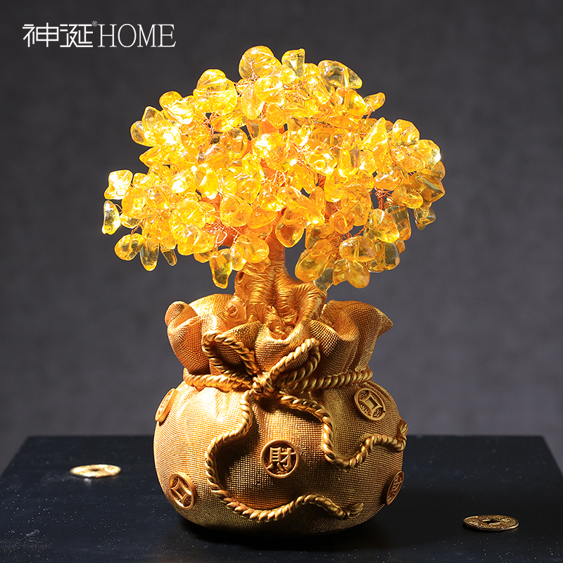 黄水晶发财c树摆件家居客厅摇钱树酒柜装饰品摆设创意礼物开业礼
