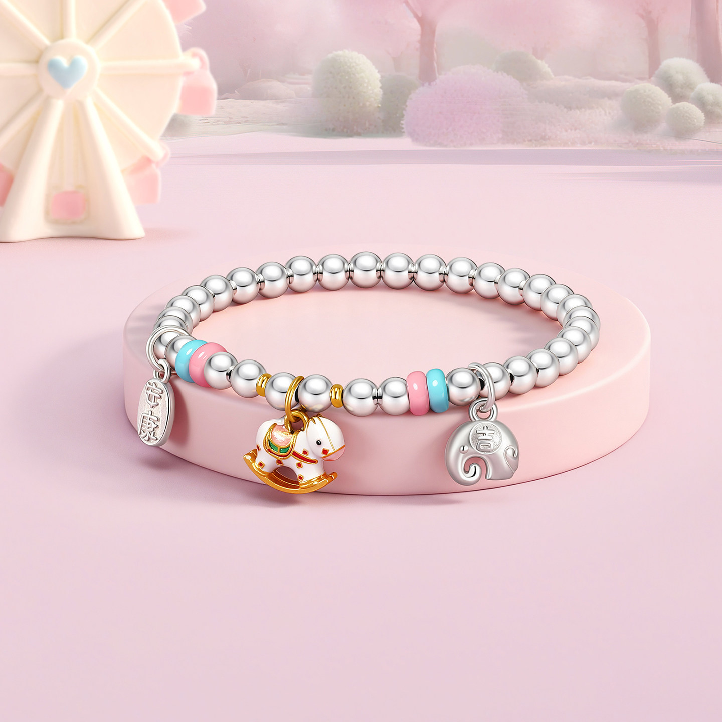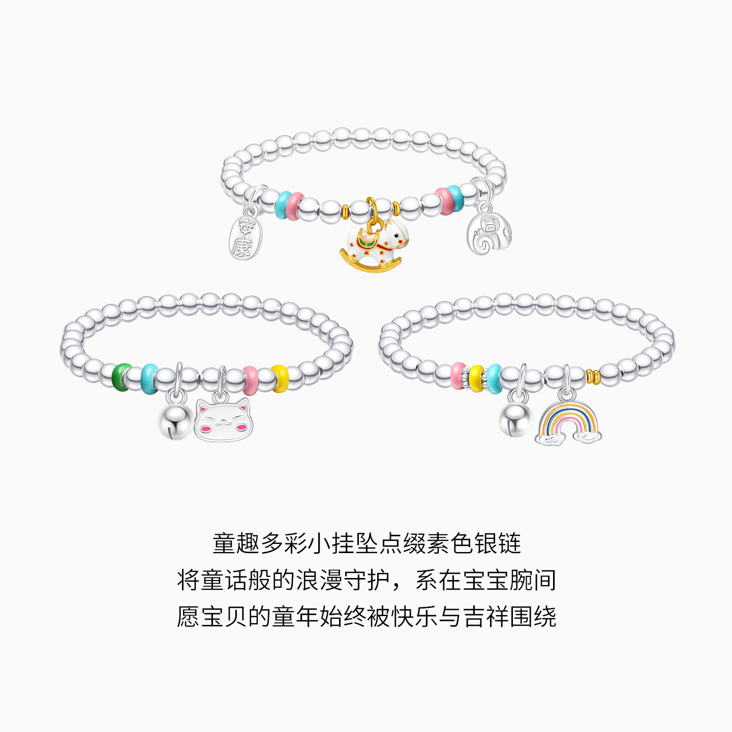 潮宏基趣玩银手链s925银手串转运串珠跑马环多巴胺马年生肖女宝宝