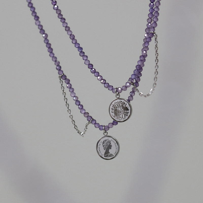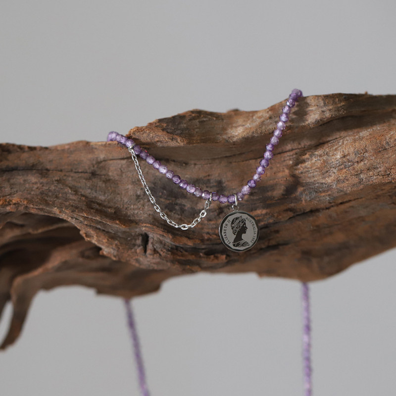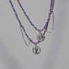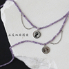 复古风~简约气质钛钢手工链锁骨链薰衣草紫色流苏钱币项链