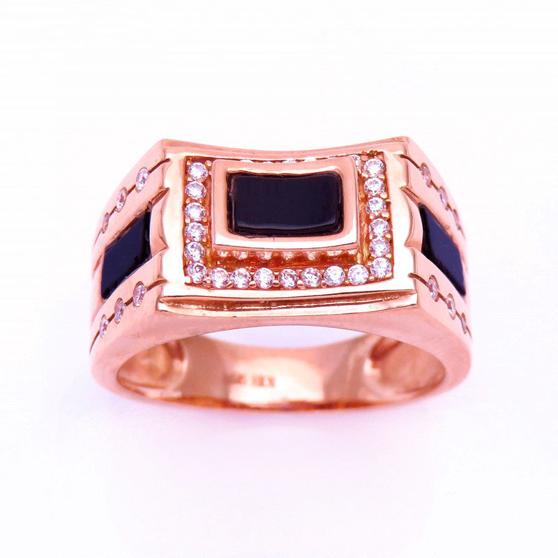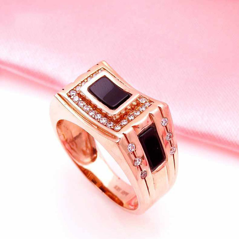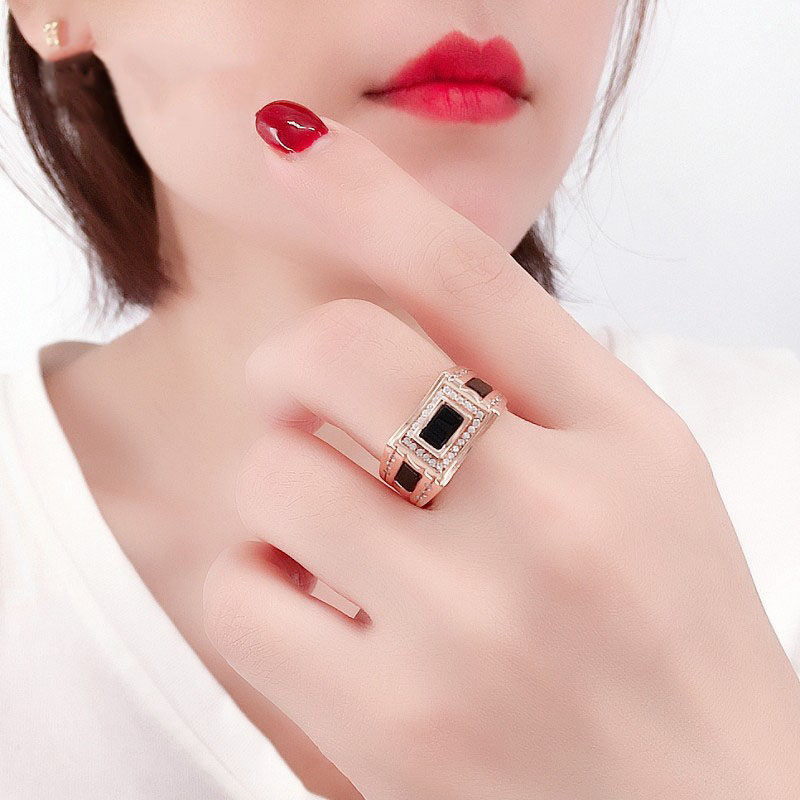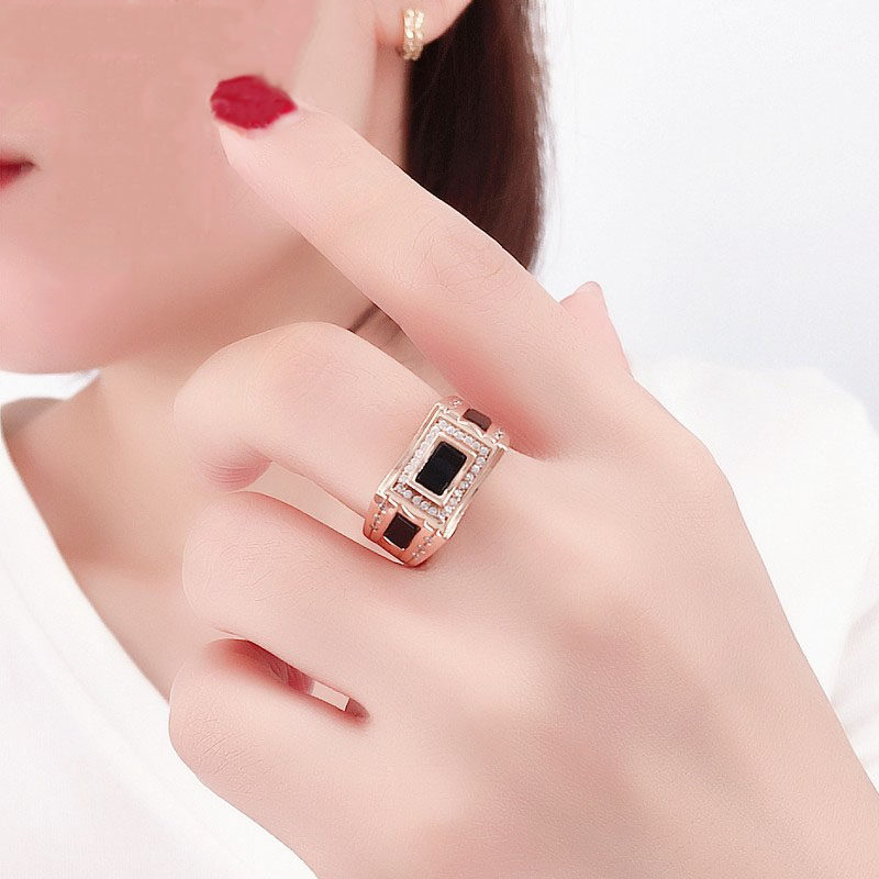俄罗斯585紫金镀14K玫瑰金彩金豪华凹面黑色戒指女戒指轻奢高级感