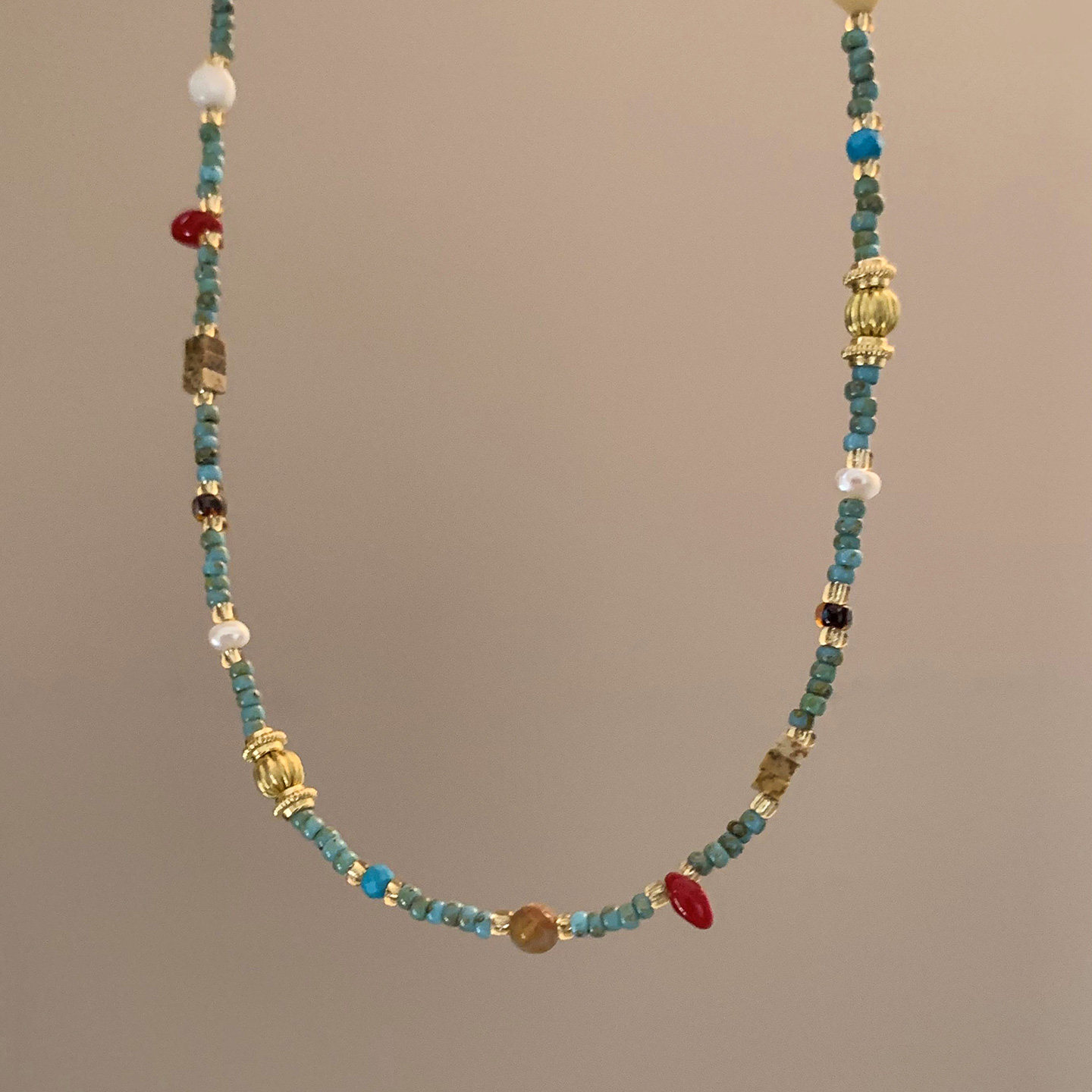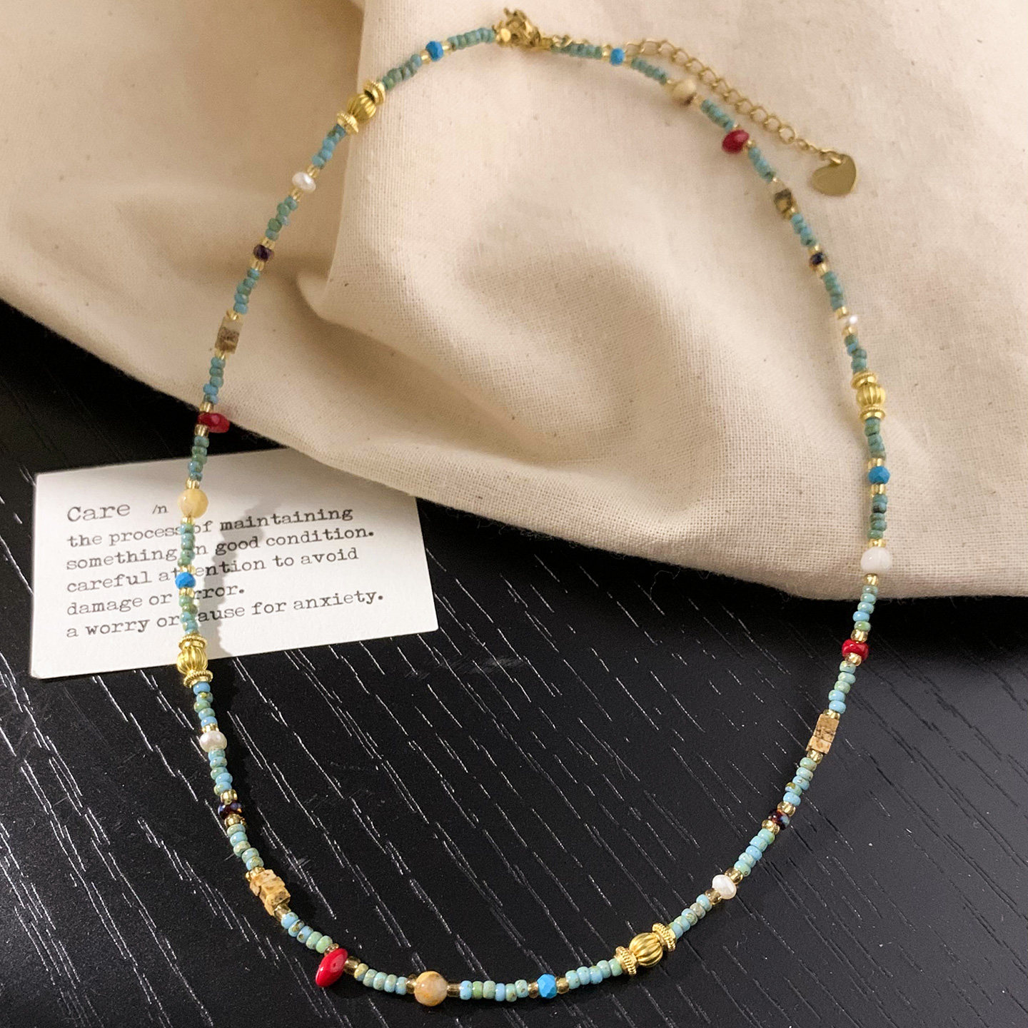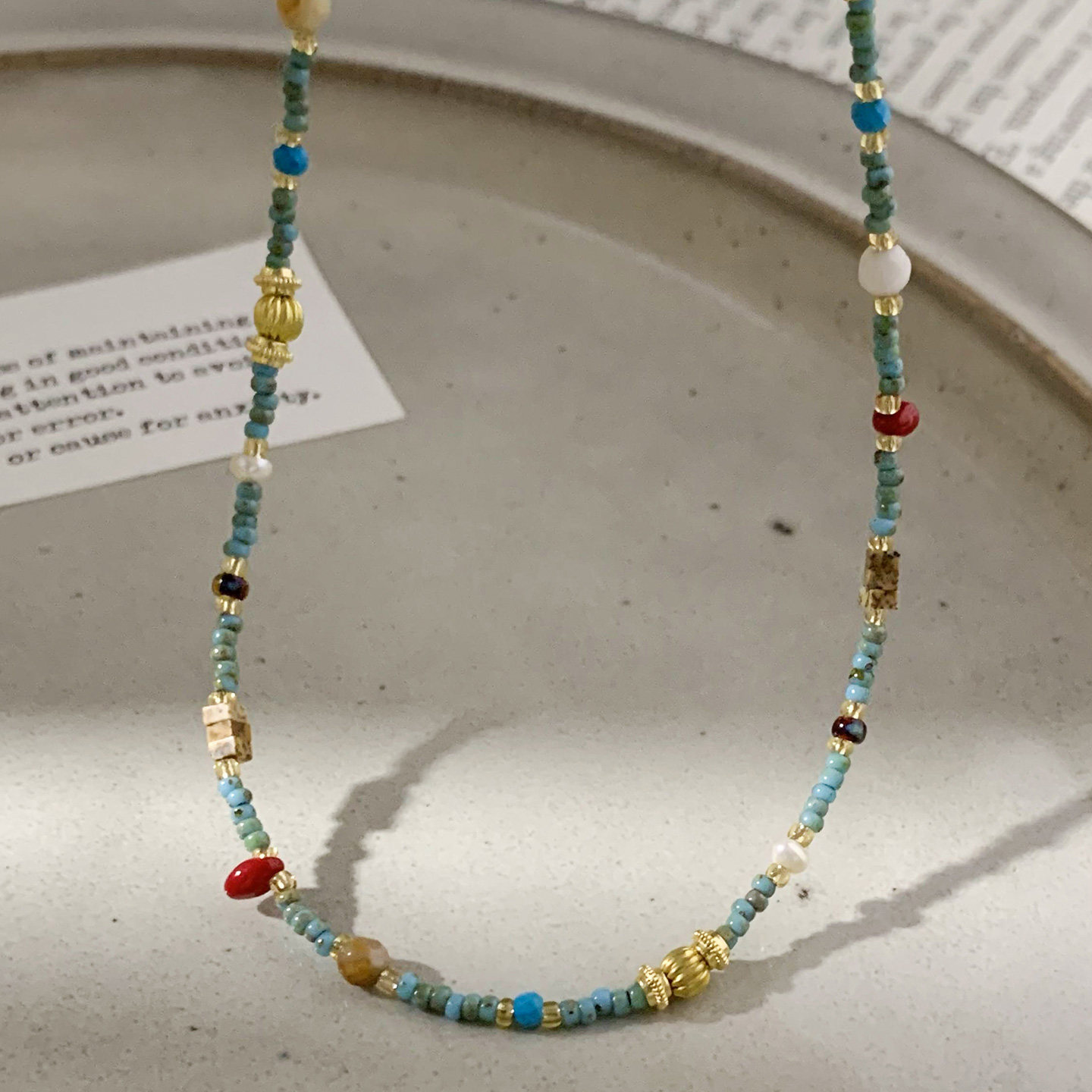 高级感天然石绿松石串珠项链女轻奢锁骨链小众设计颈链百搭配饰